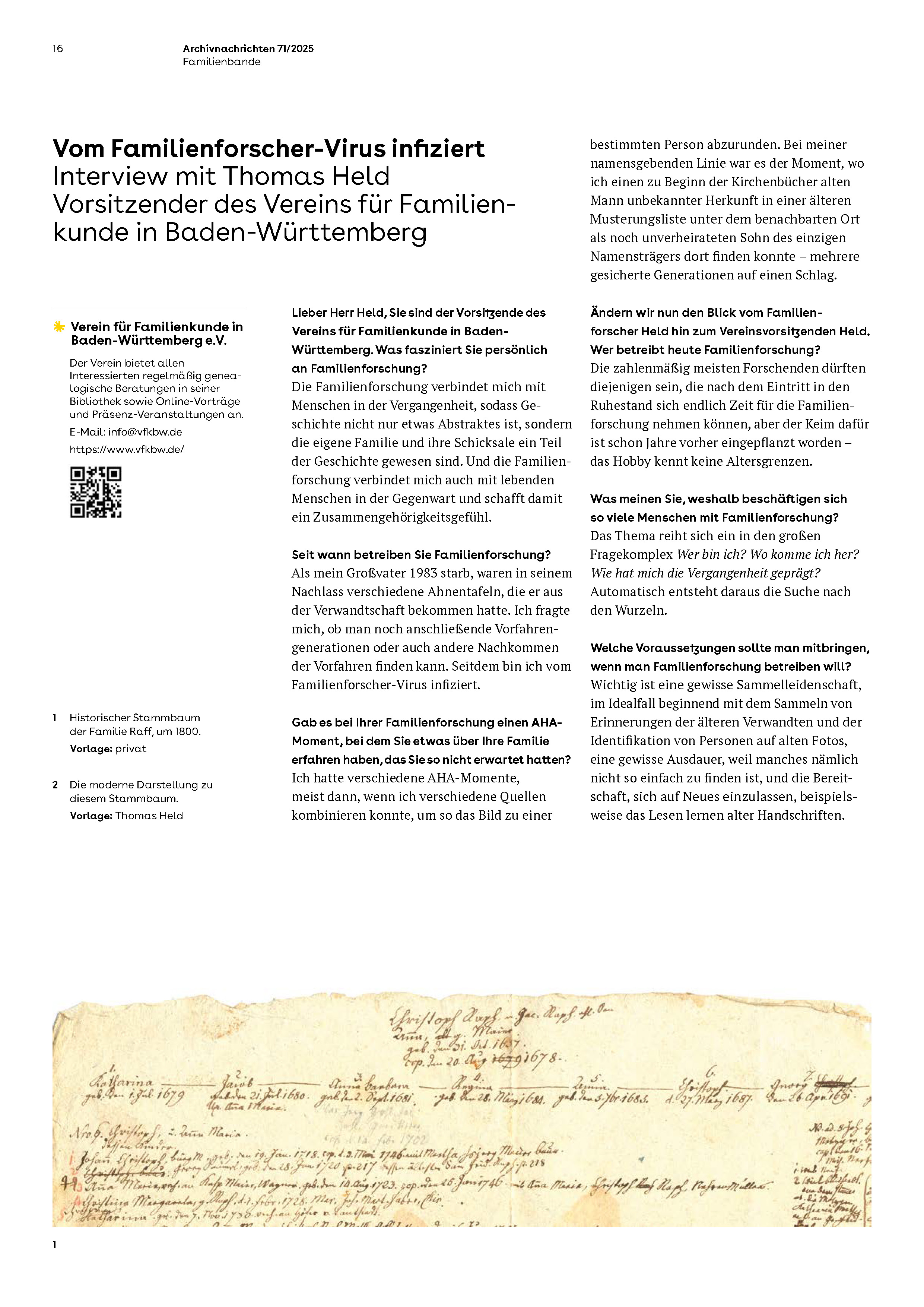 Interview mit Thomas Held Vorsitzender des Vereins für Familienkunde in Baden-Württemberg