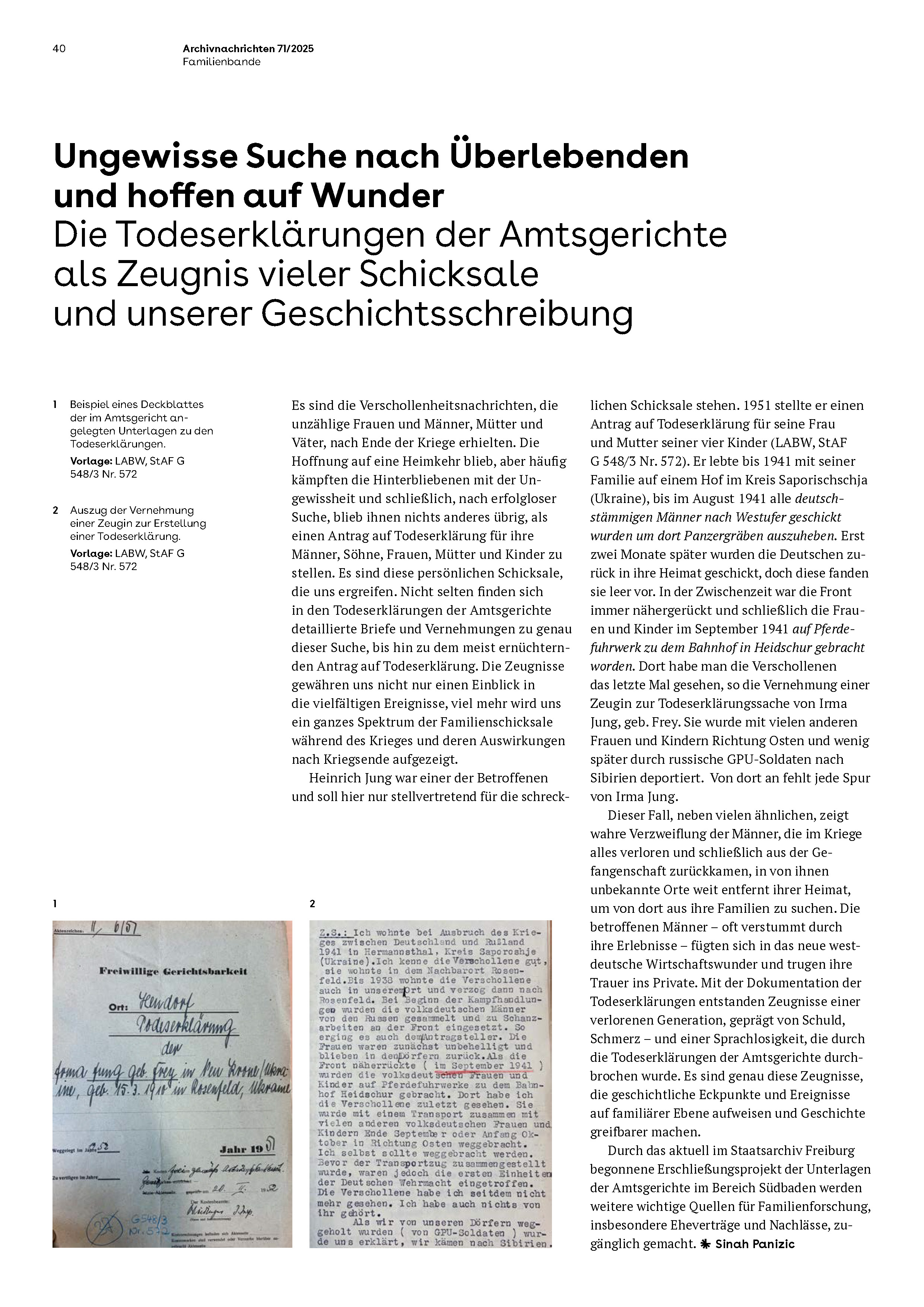 Die Todeserklärungen der Amtsgerichte als Zeugnis vieler Schicksale und unserer Geschichtsschreibung