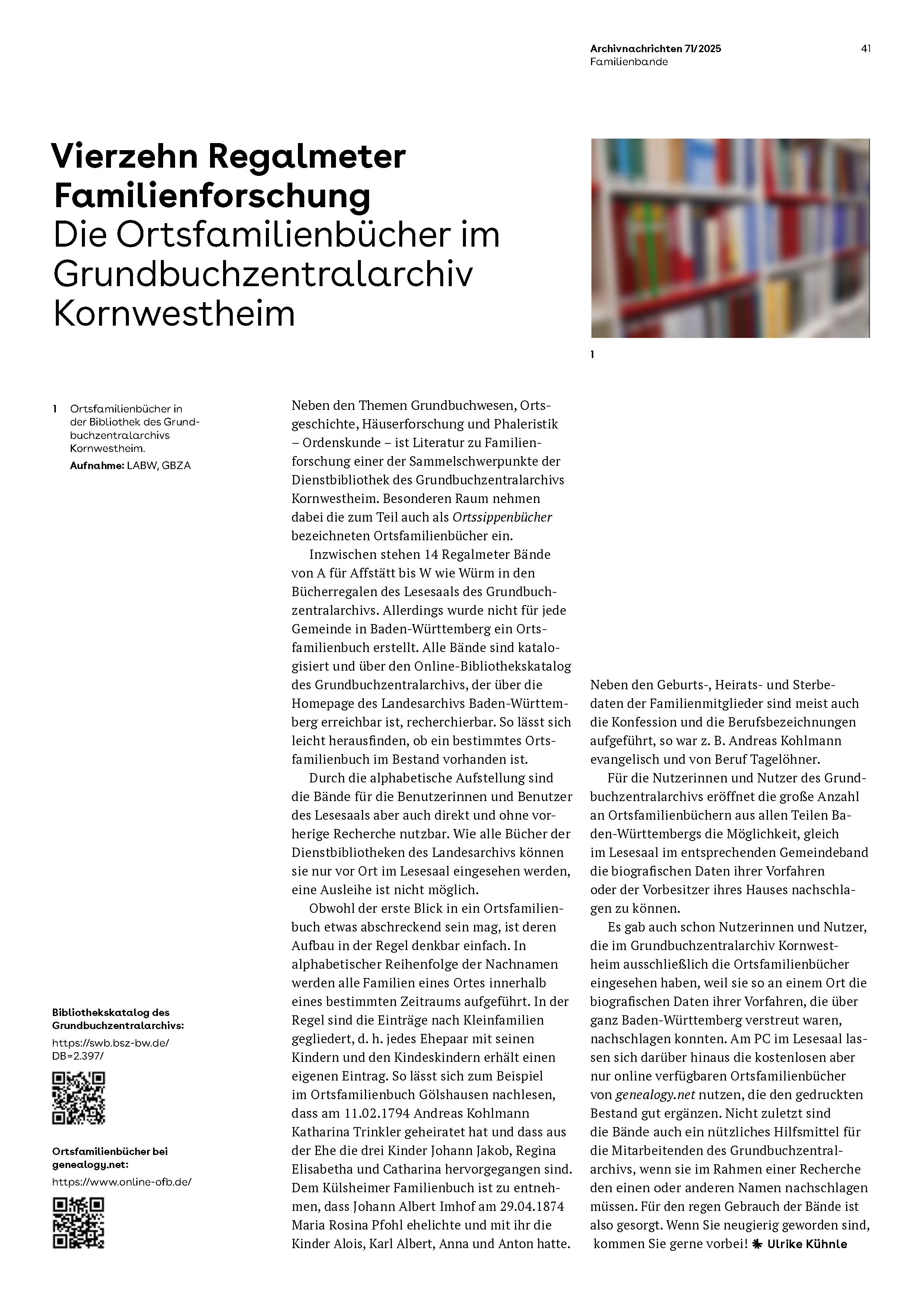 Die Ortsfamilienbücher im Grundbuchzentralarchiv Kornwestheim