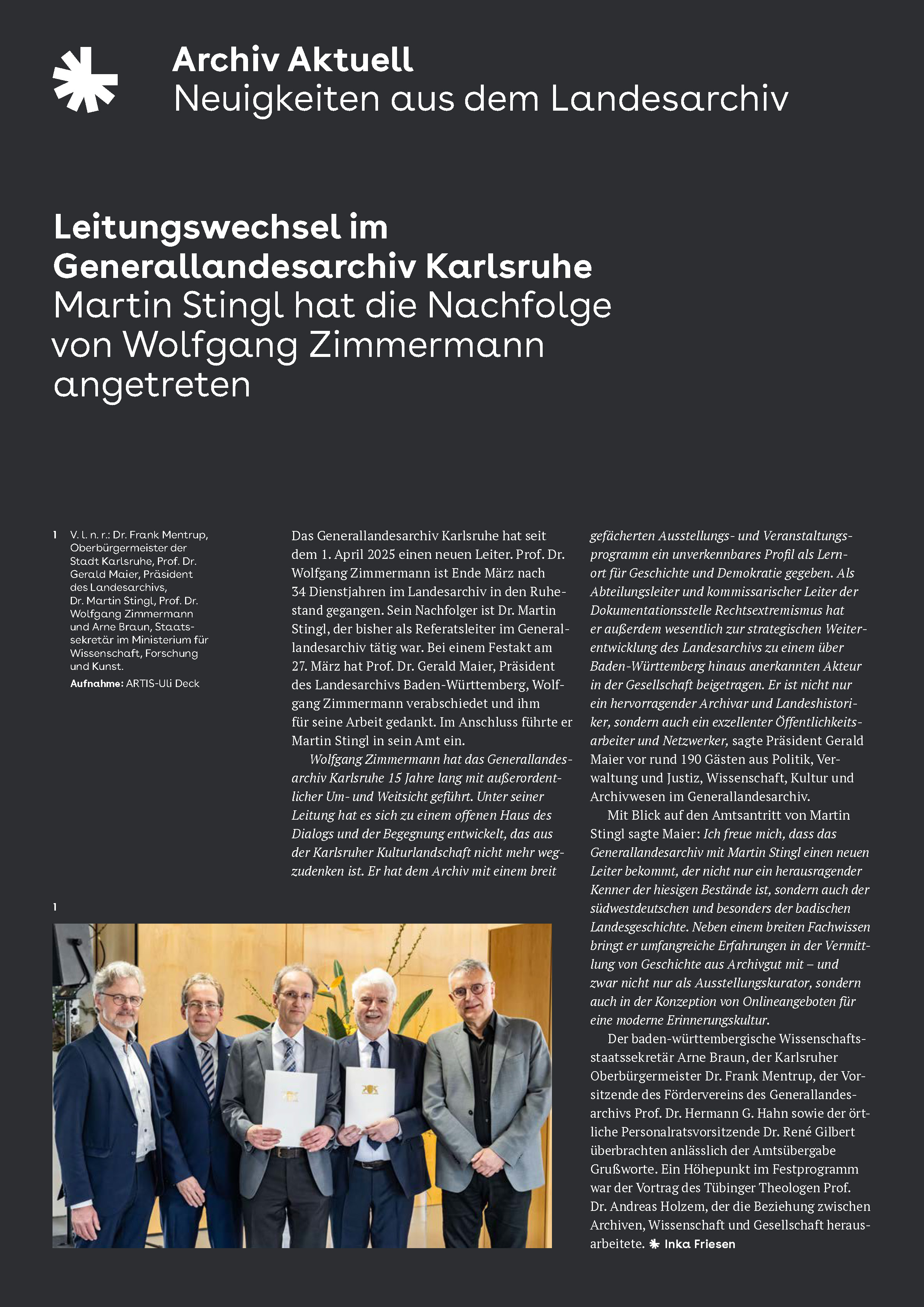 Leitungswechsel im Generallandesarchiv Karlsruhe