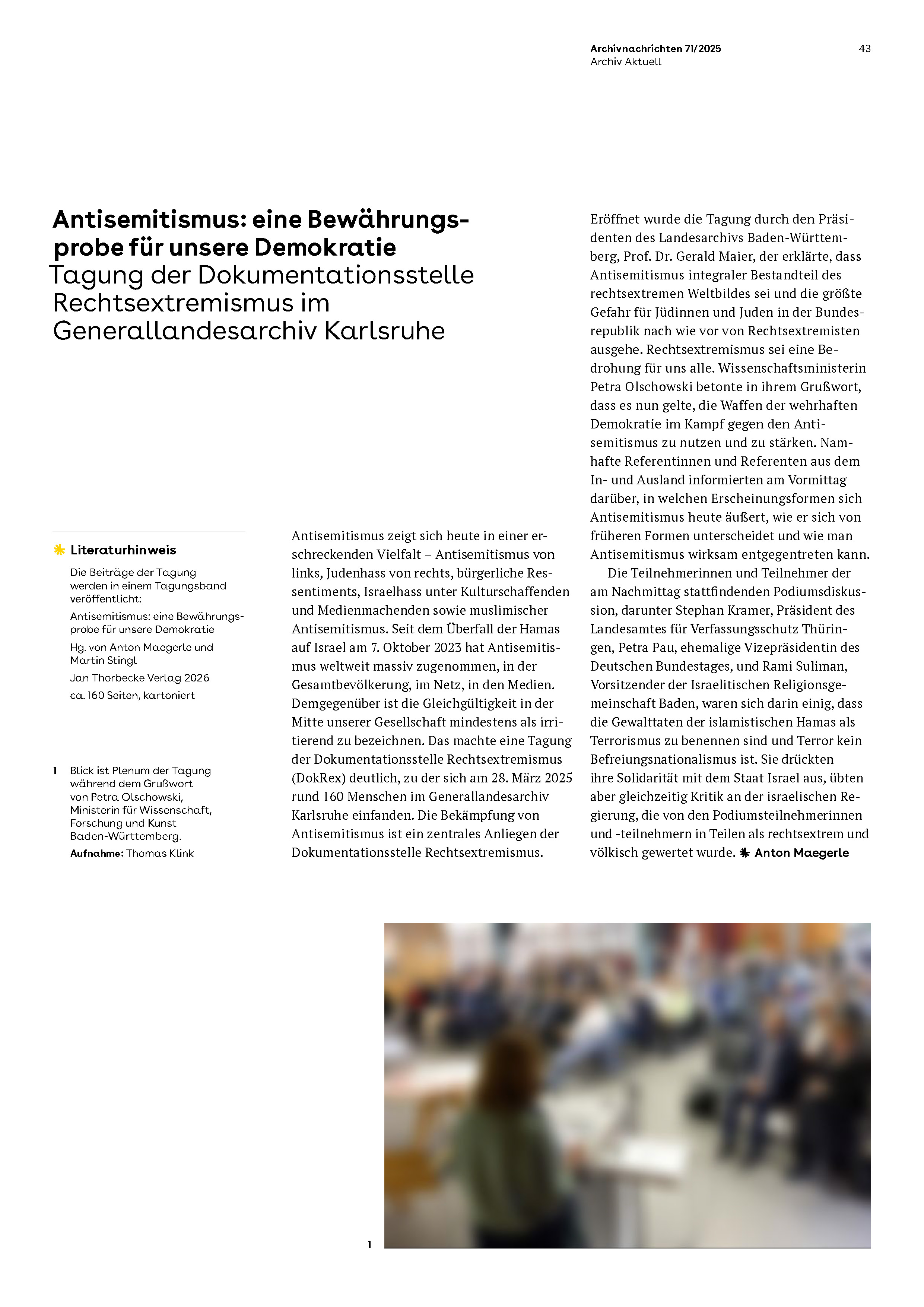Tagung der Dokumentationsstelle Rechtsextremismus im Generallandesarchiv Karlsruhe