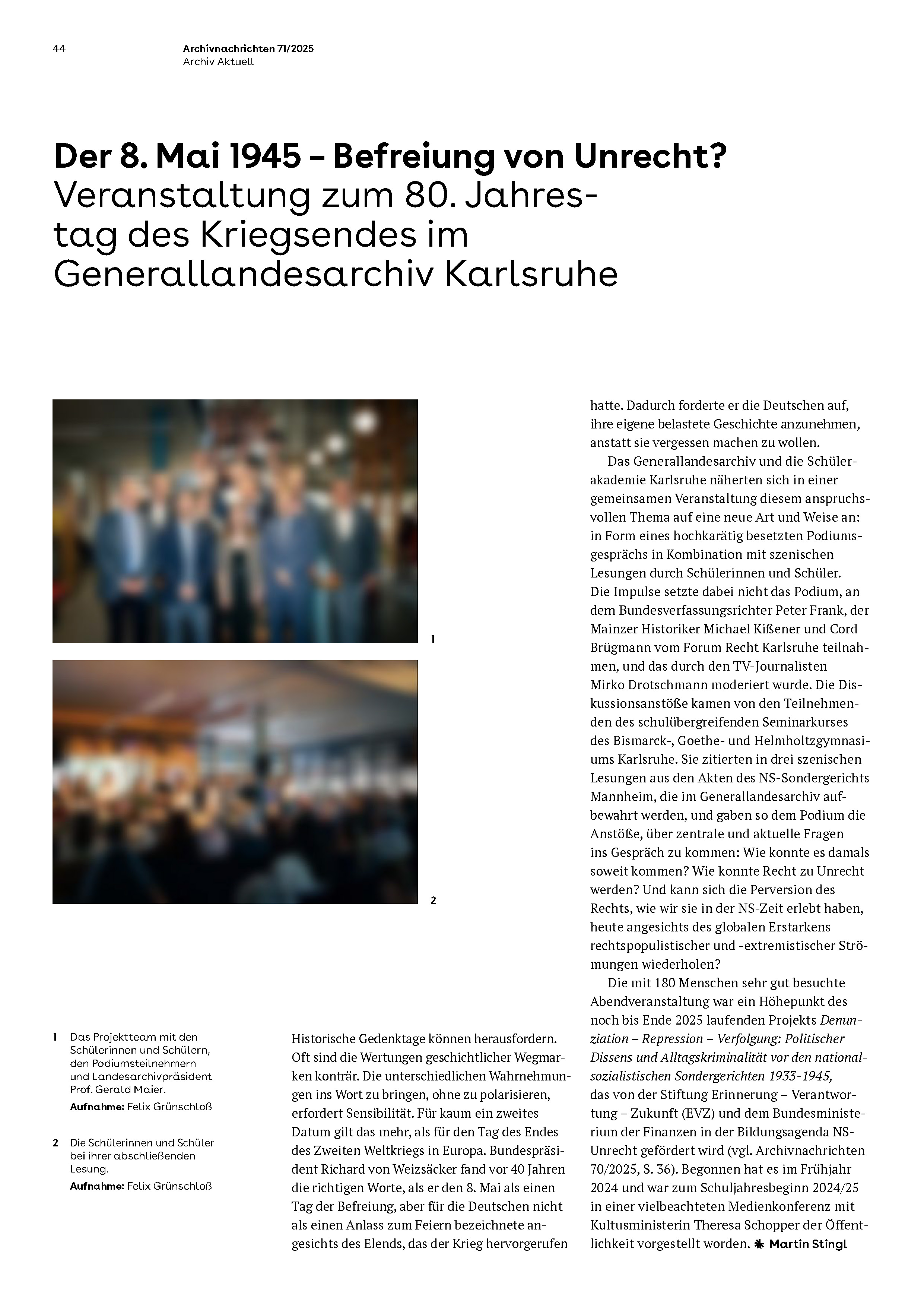 Veranstaltung zum 80. Jahrestag des Kriegsendes im Generallandesarchiv Karlsruhe