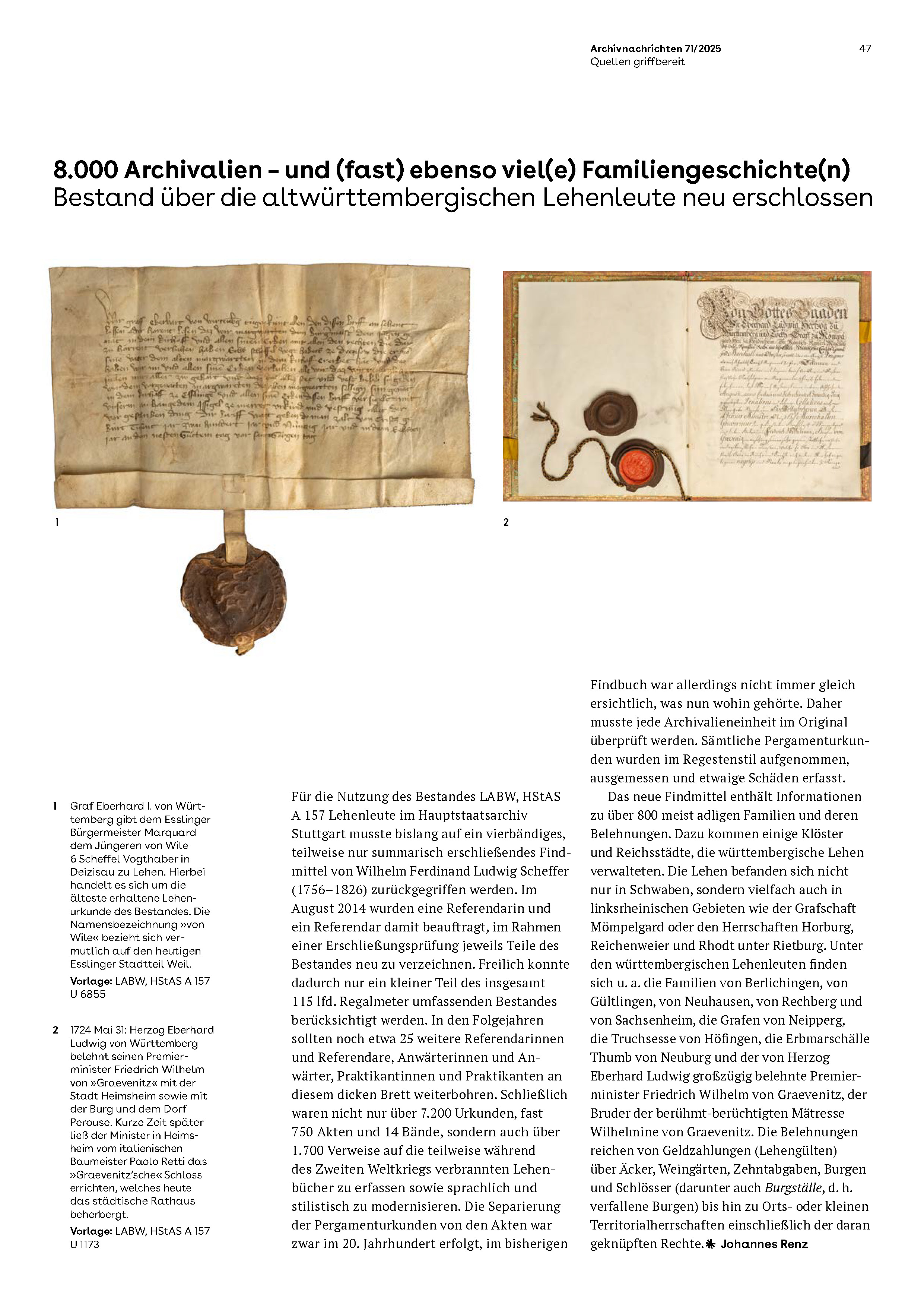 Bestand über die altwürttembergischen Lehenleute neu erschlossen