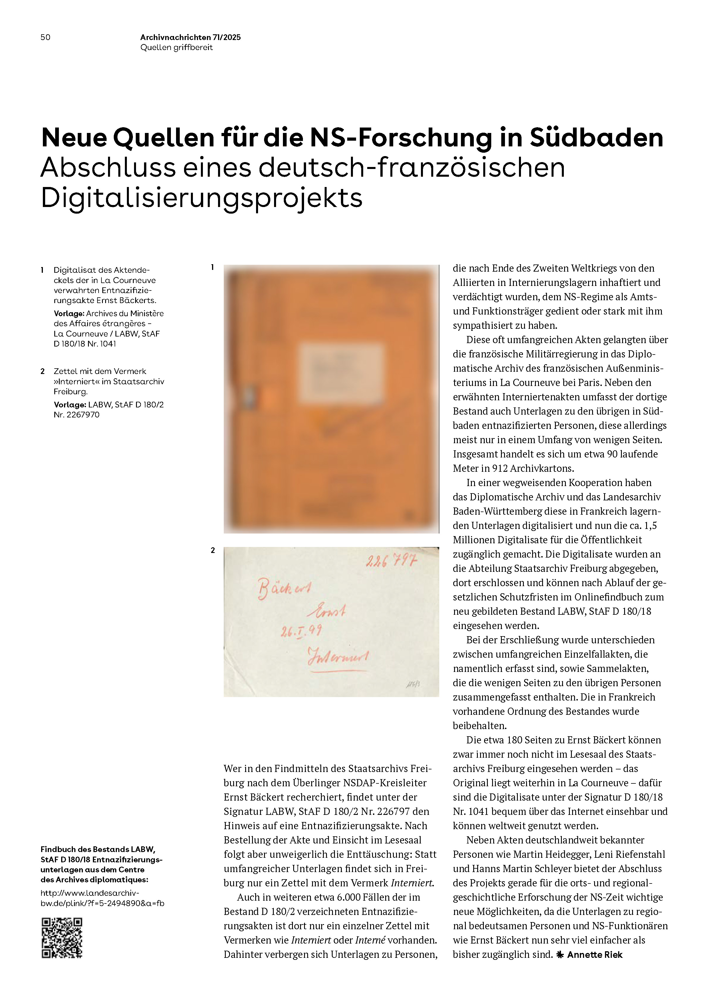 Rückschau auf über 50 Jahre Recherchen im Archiv