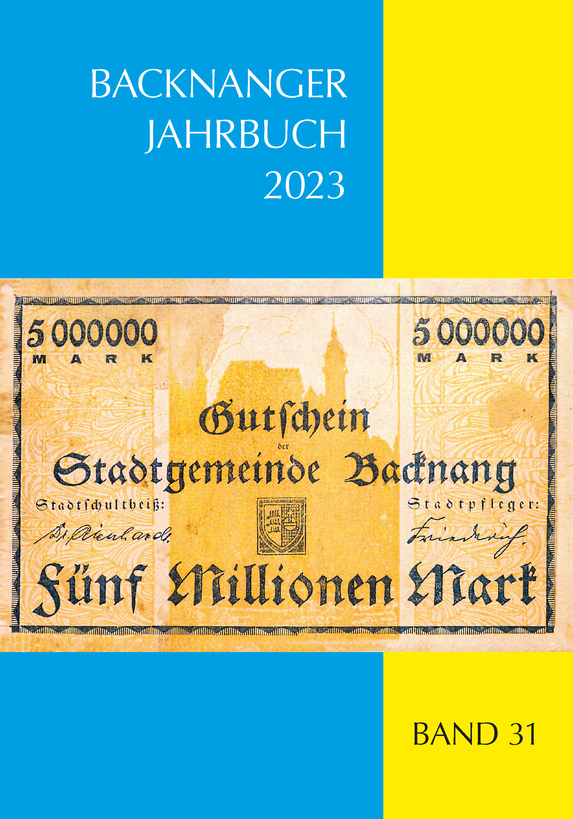 Durch den Download liegen weiterhin alle Rechte für die Weiterverbreitung bei der Stadt Backnang und beim Fr. Stroh Verlag, Backnang, für die Nutzung von Abbildungen bei jenen Personen oder Einrichtungen, die die Fotos zur Verfügung gestellt haben. Entsprechende Hinweise sind am Ende der Dateien zu finden. Vor der Weiternutzung der Dateien oder Auszügen daraus ist das Einverständnis bei der Stadt Backnang und beim Fr. Stroh Verlag, Backnang, einzuholen.