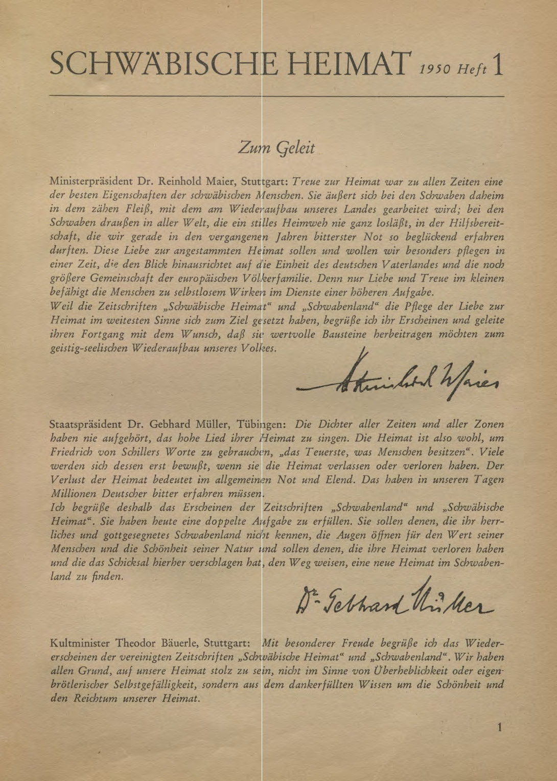 Bd. 1 Nr. 1 (1950): Schwäbische Heimat