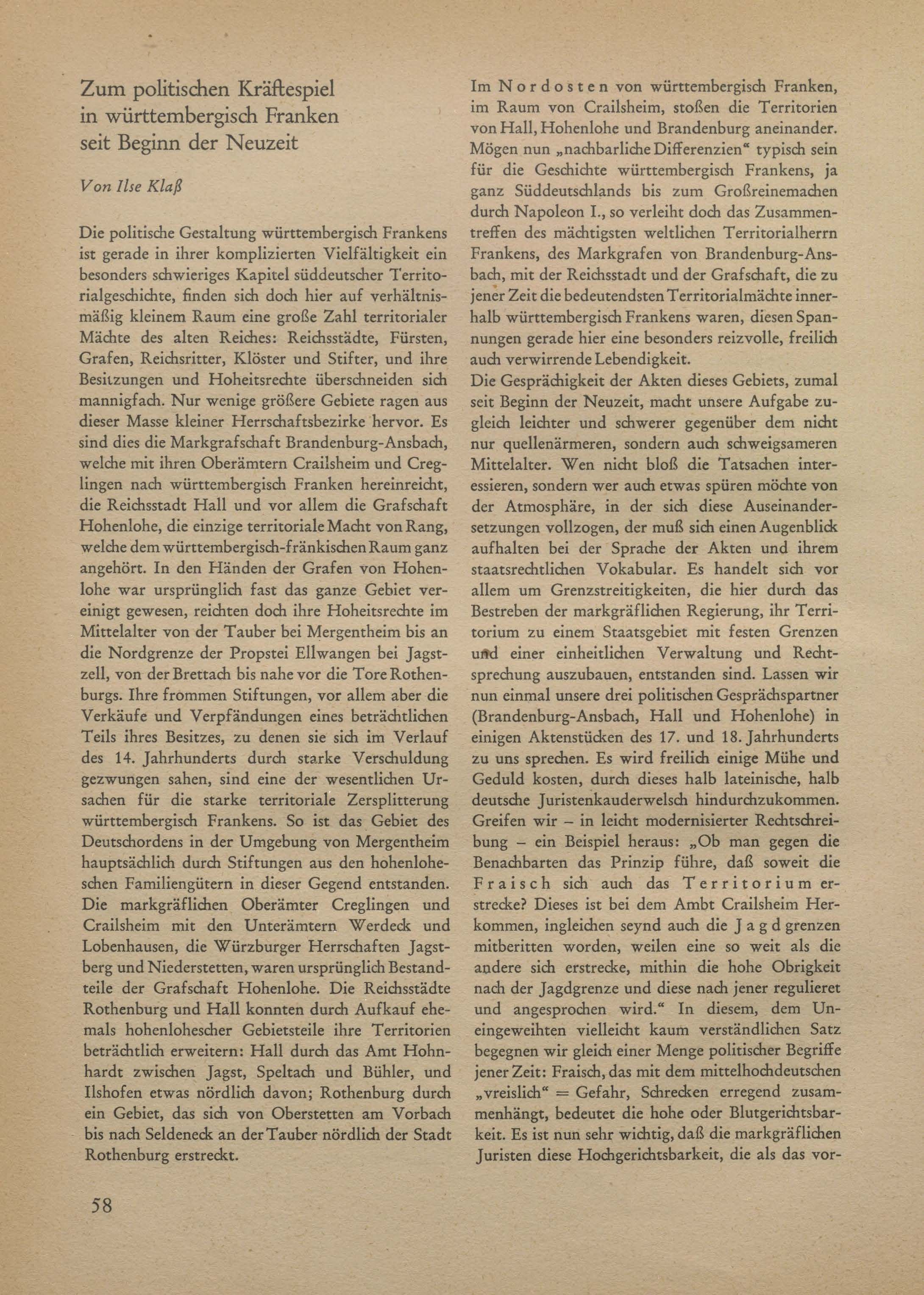 Zum politischen Kräftespiel in württembergisch Franken seit Beginn der Neuzeit
