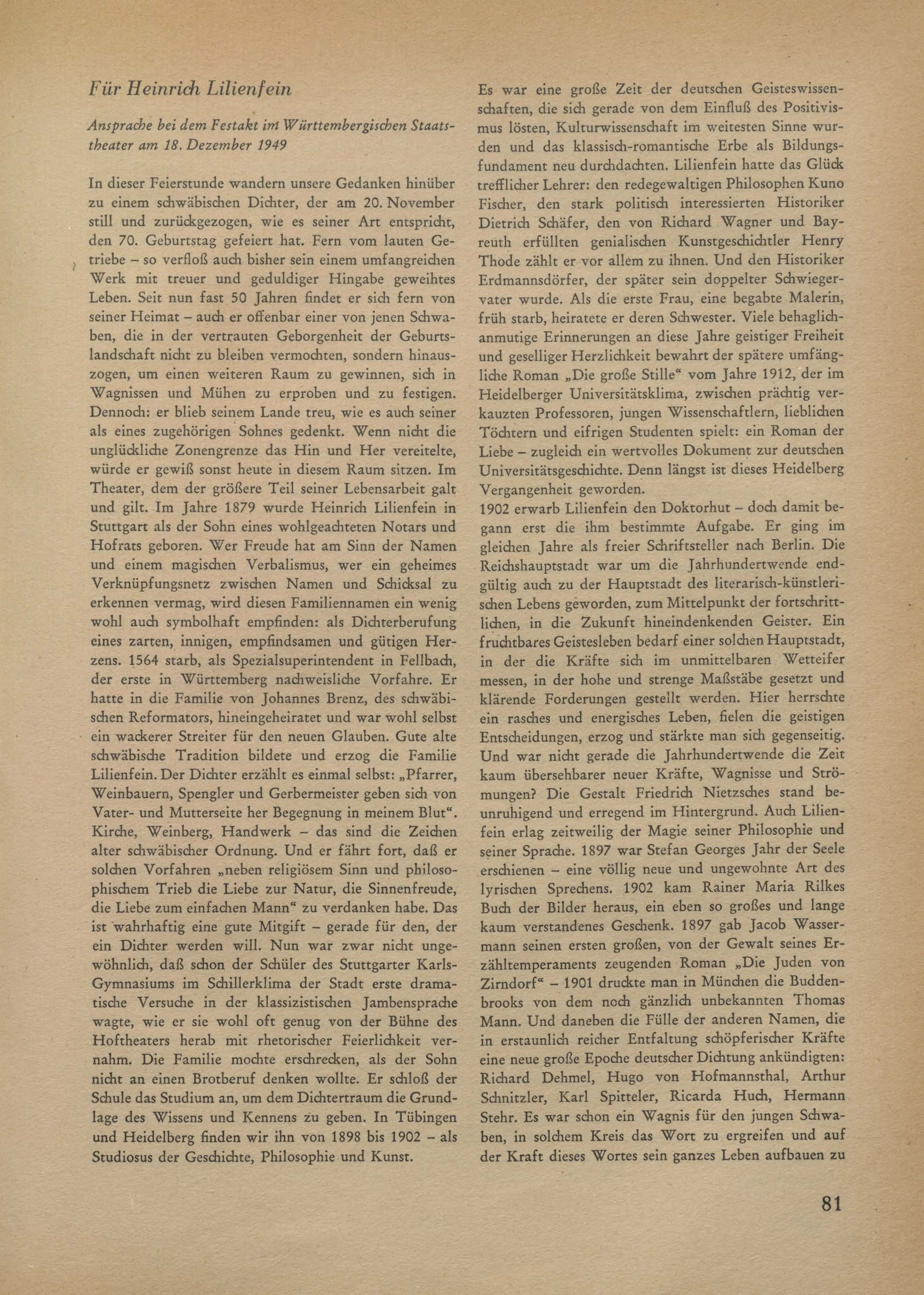 Ansprache bei dem Festakt im Württembergischen Staatstheater am 18. Dezember 1949