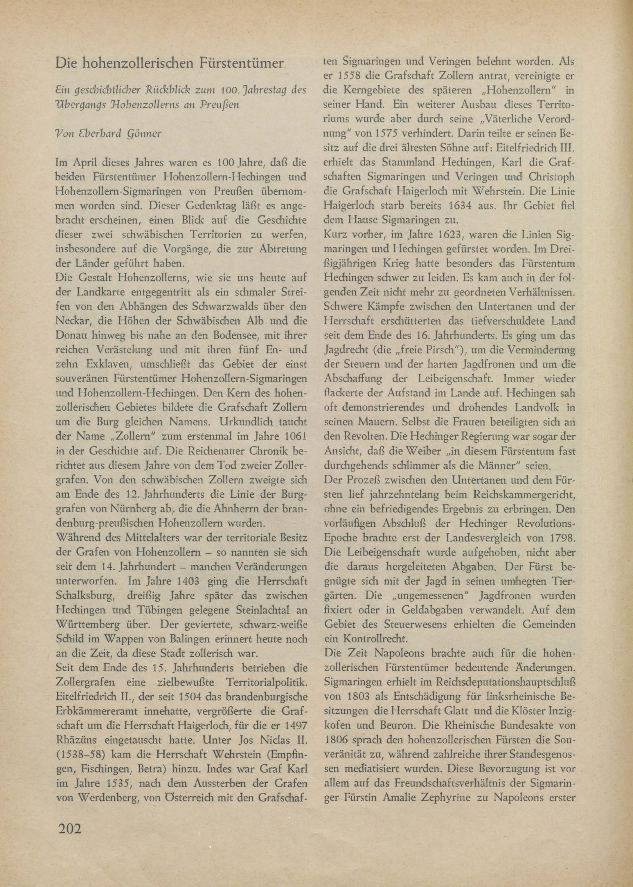 Ein geschichtlicher Rückblick zum 100. Jahrestag des Übergangs Hohenzollerns an Preußen