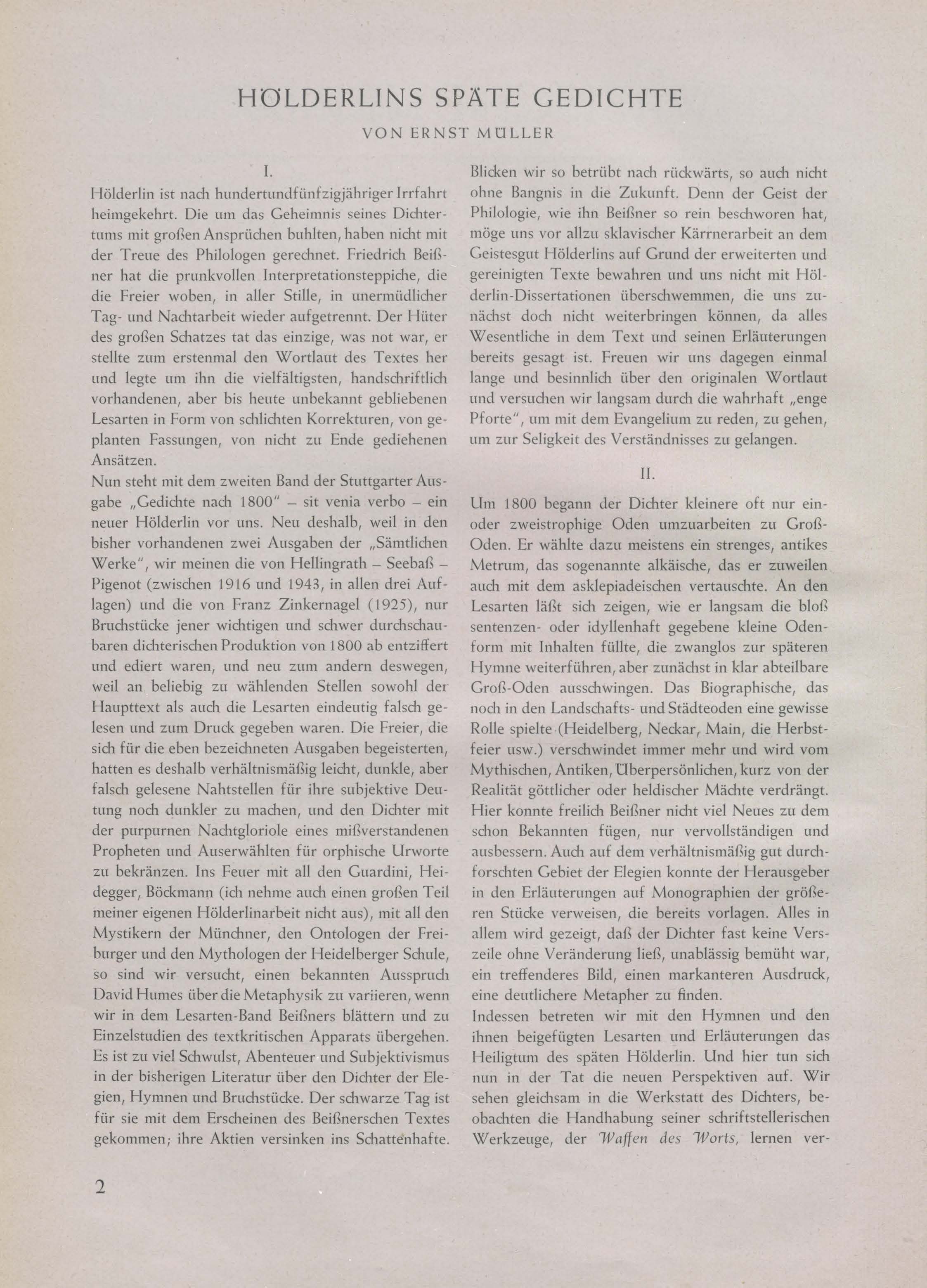 Hölderlins späte Gedichte