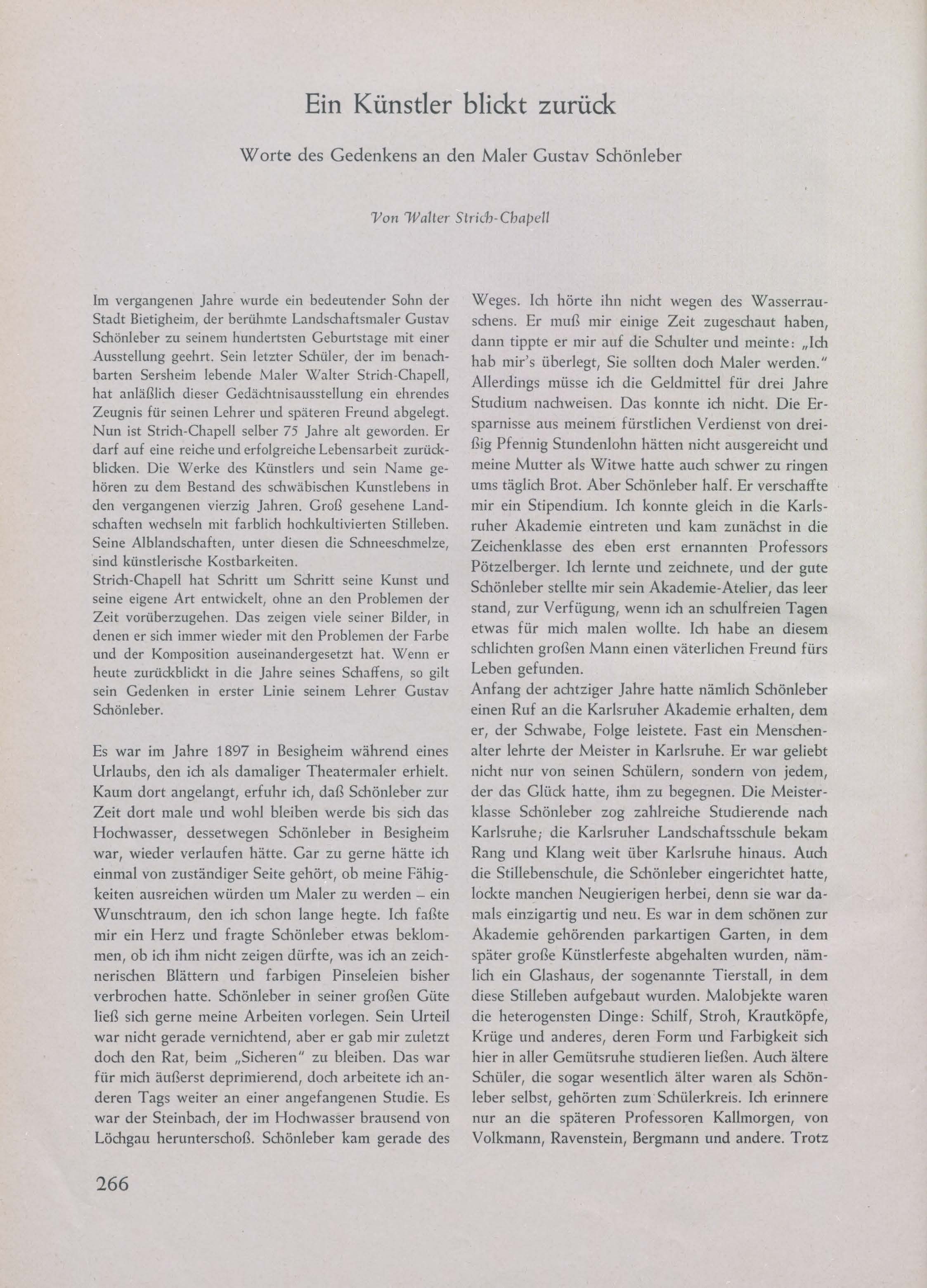 Worte des Gedenkens an den Maler Gustav Schönleber