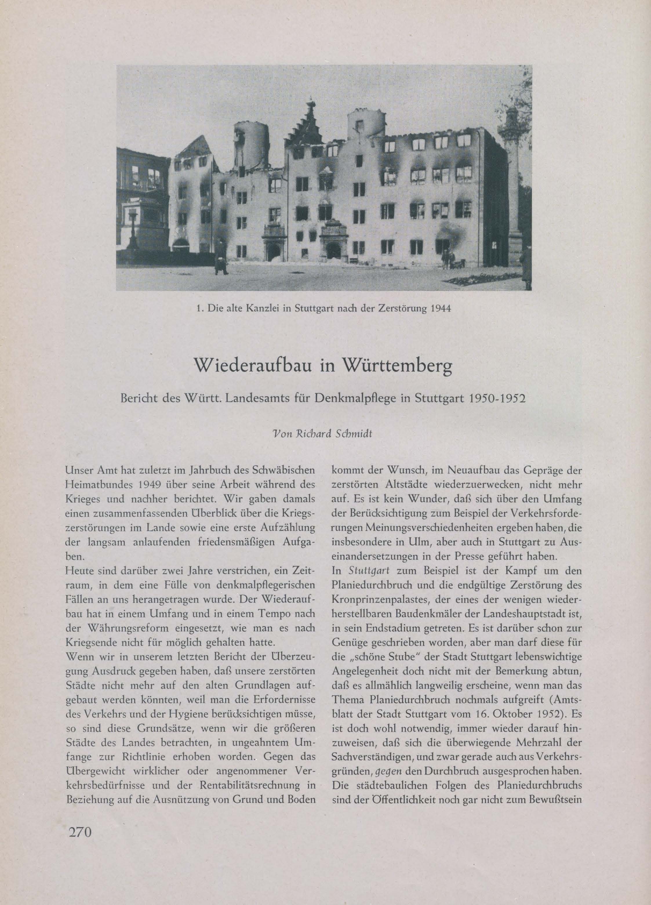 Bericht des Württ. Landesamts für Denkmalpflege in Stuttgart 1950-1952