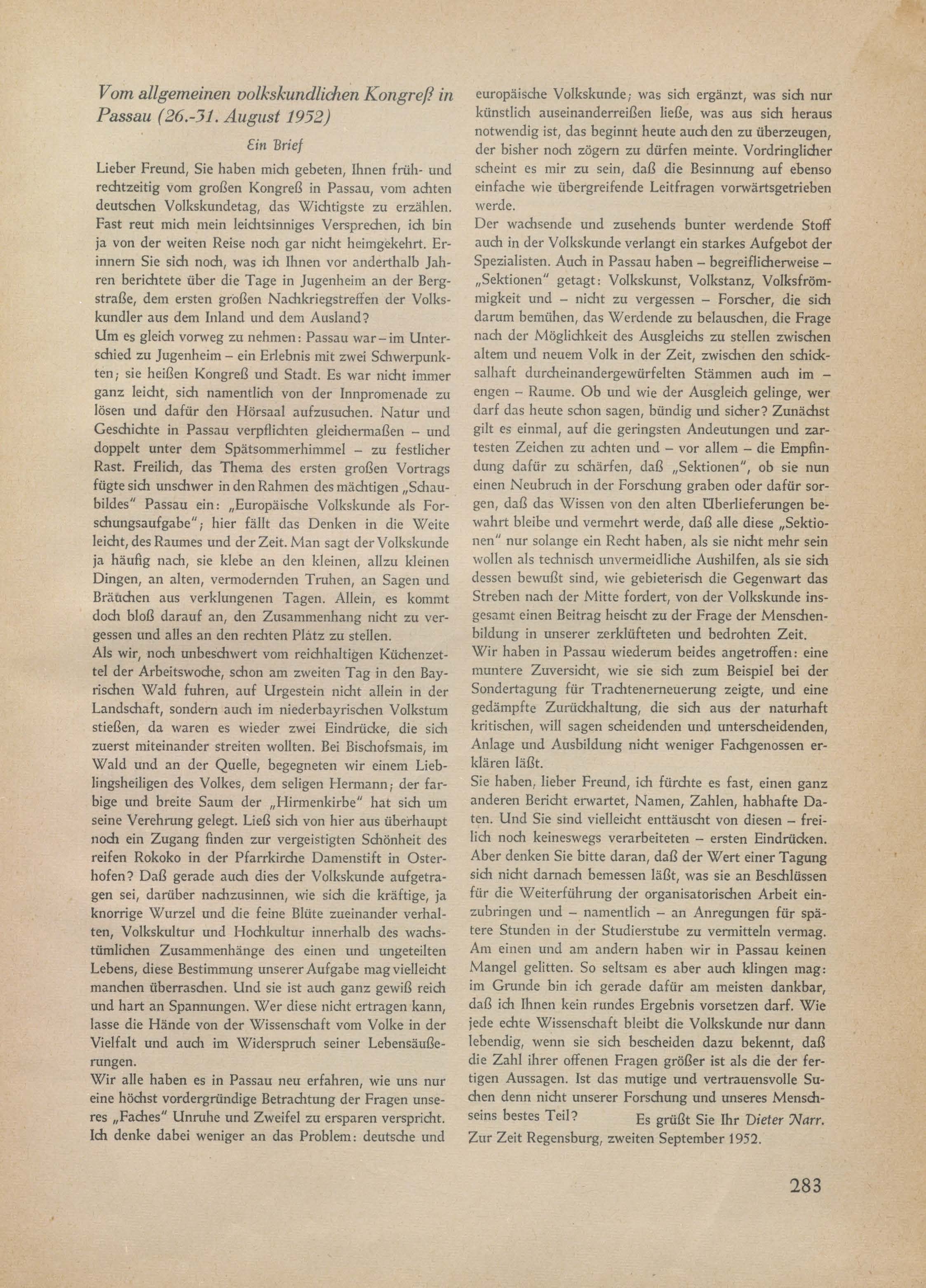 Vom allgemeinen volkskundlichen Kongreß in Passau (26.-31. August 1952)