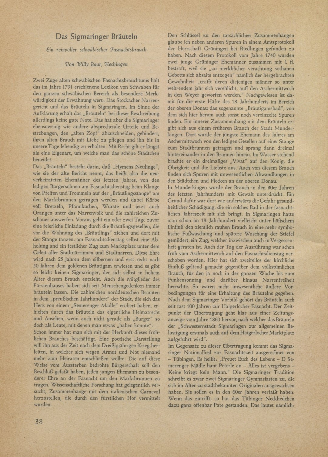 Das Sigmaringer Bräuteln