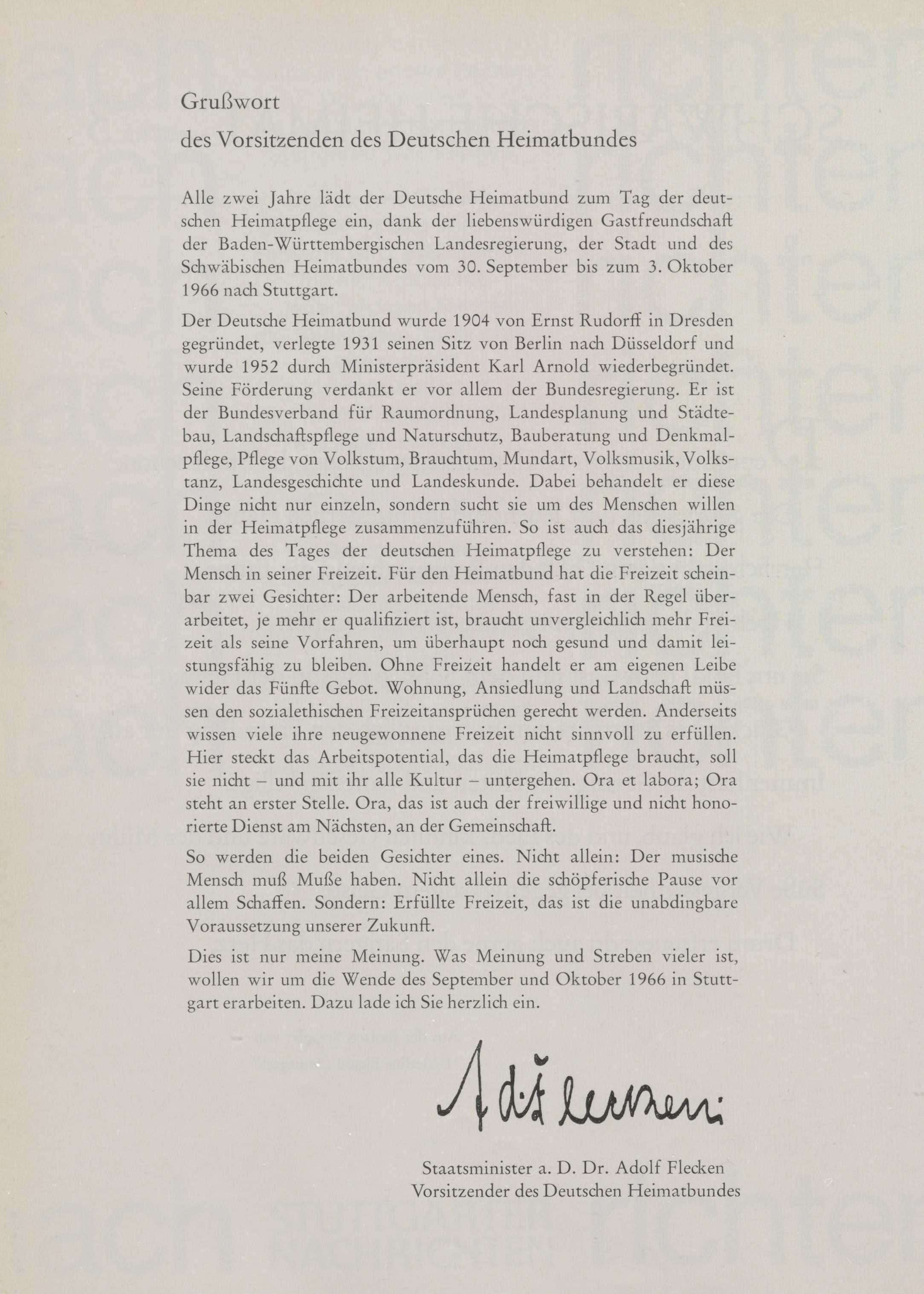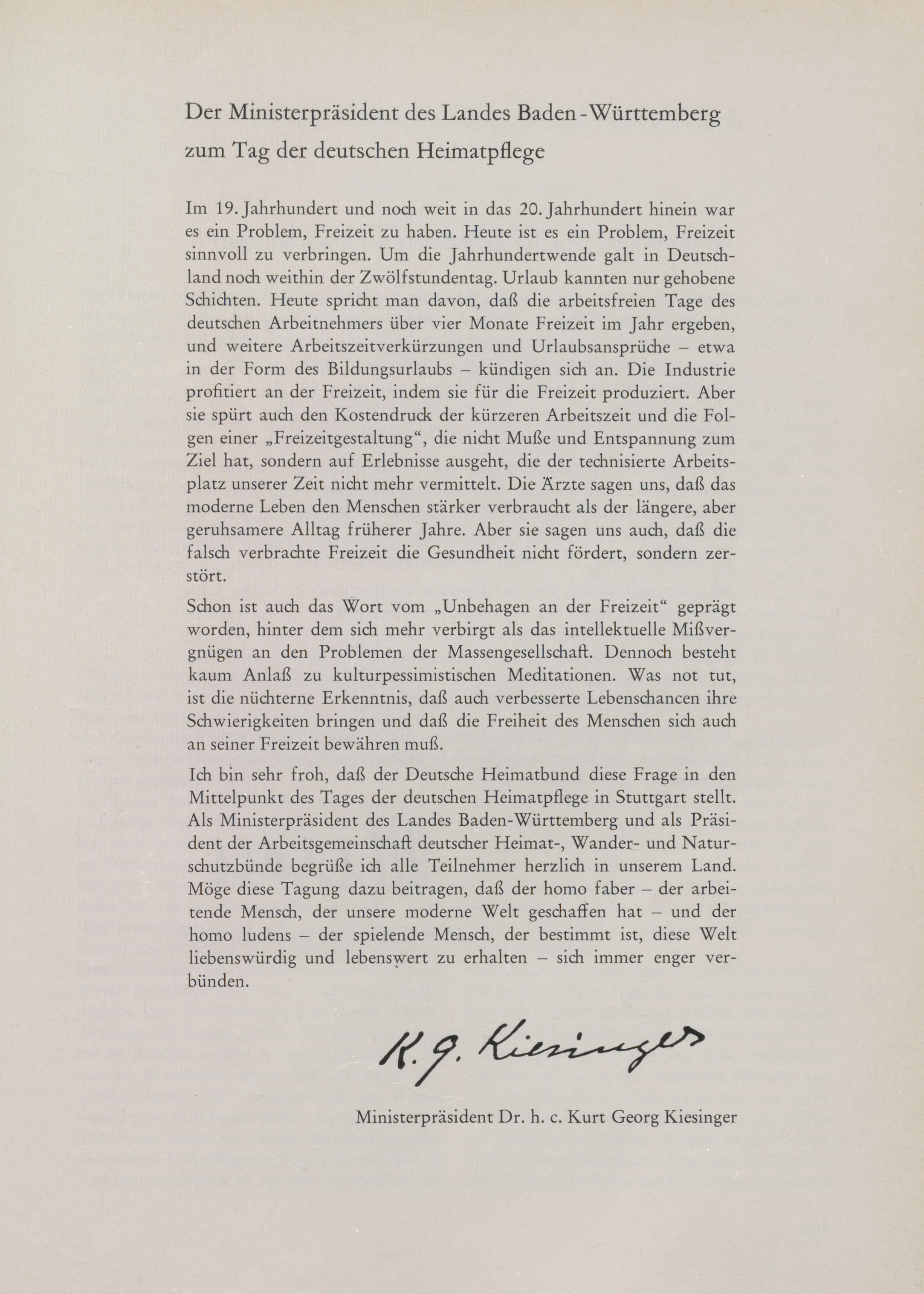 Der Ministerpräsident des Landes Baden-Württemberg zum Tag der deutschen Heimatpflege