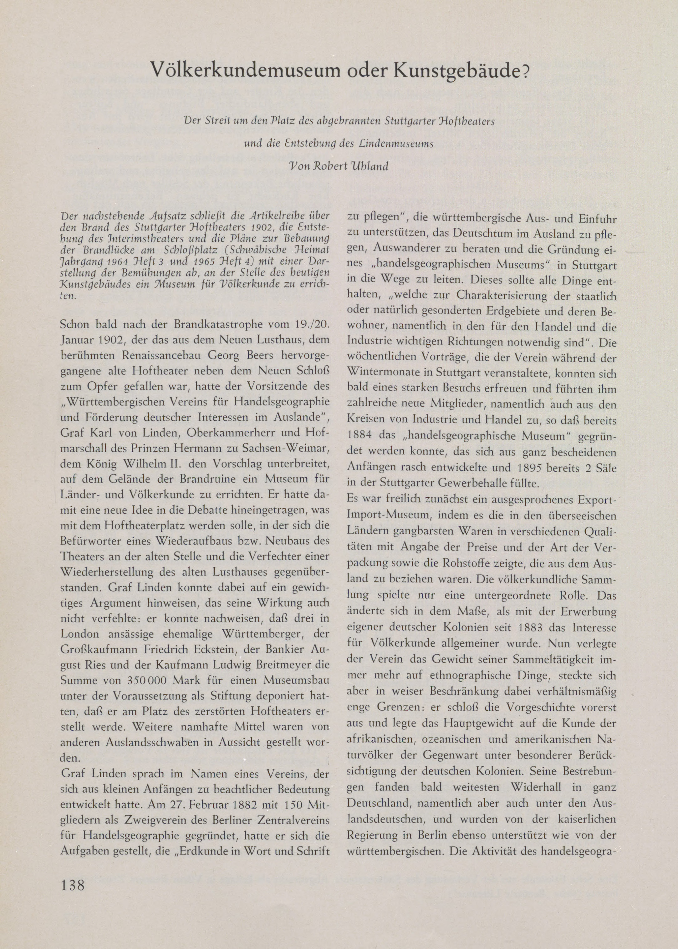 Der Streit um den Platz des abgebrannten Stuttgarter Hoftheaters und die Entstehung des Lindenmuseums