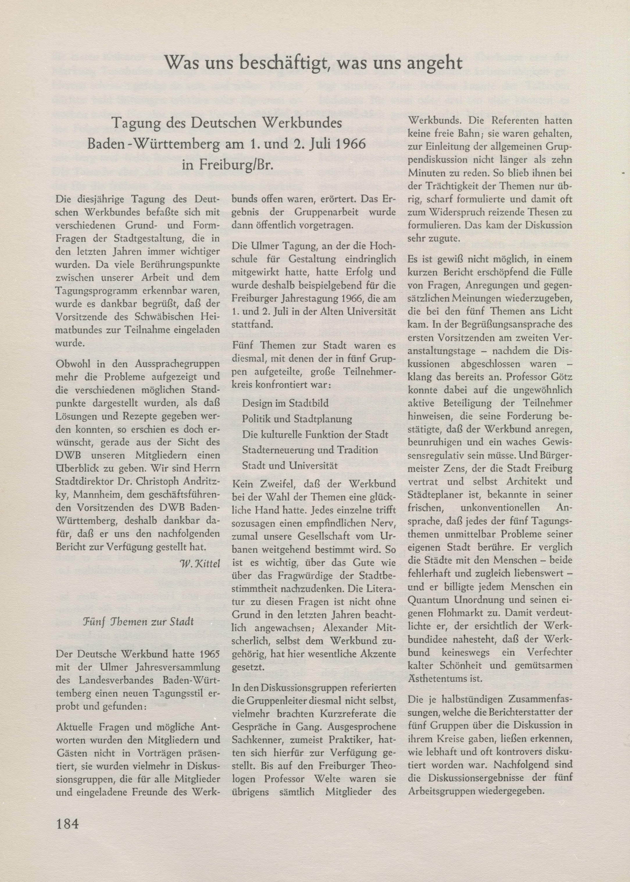 Tagung des Deutschen Werkbundes Baden-Württemberg am 1. und 2. Juli 1966 in Freiburg/Br.