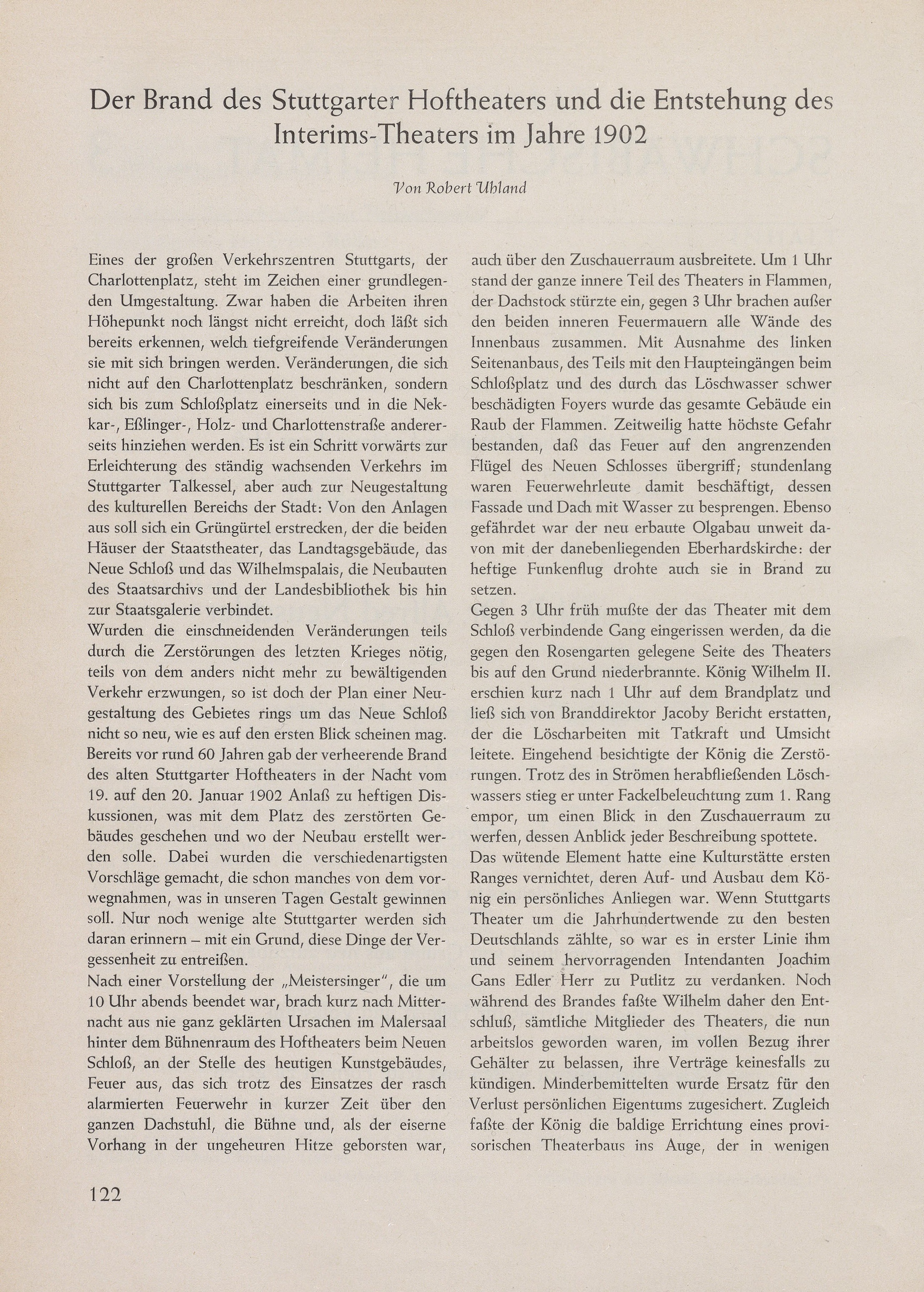 Der Brand des Stuttgarter Hoftheaters und die Entstehung des Interims-Theaters im Jahre 1902