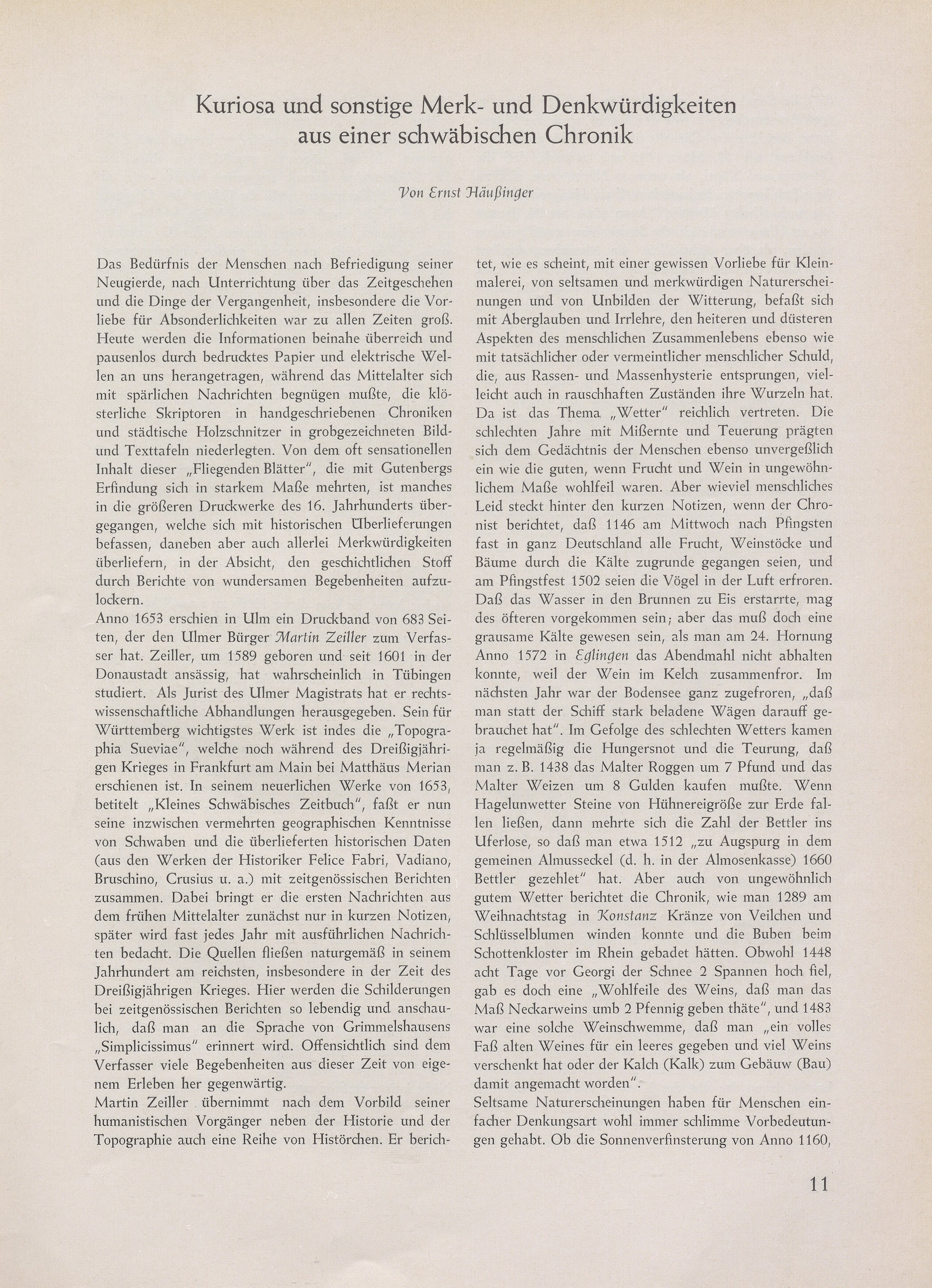 Kuriosa und sonstige Merk- und Denkwürdigkeiten aus einer schwäbischen Chronik