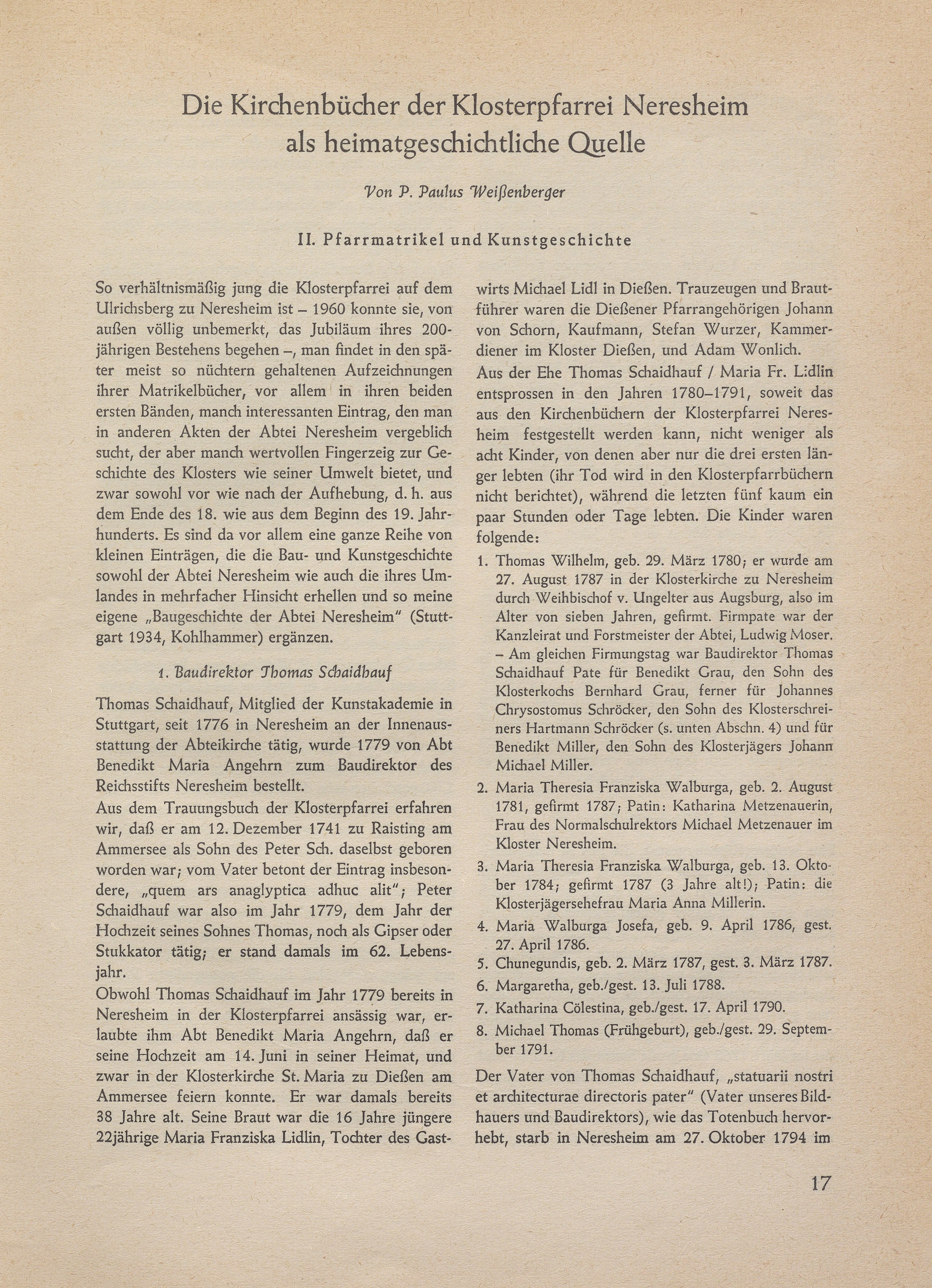 Die Kirchenbücher der Klosterpfarrei Neresheim als heimatgeschichtliche Quelle