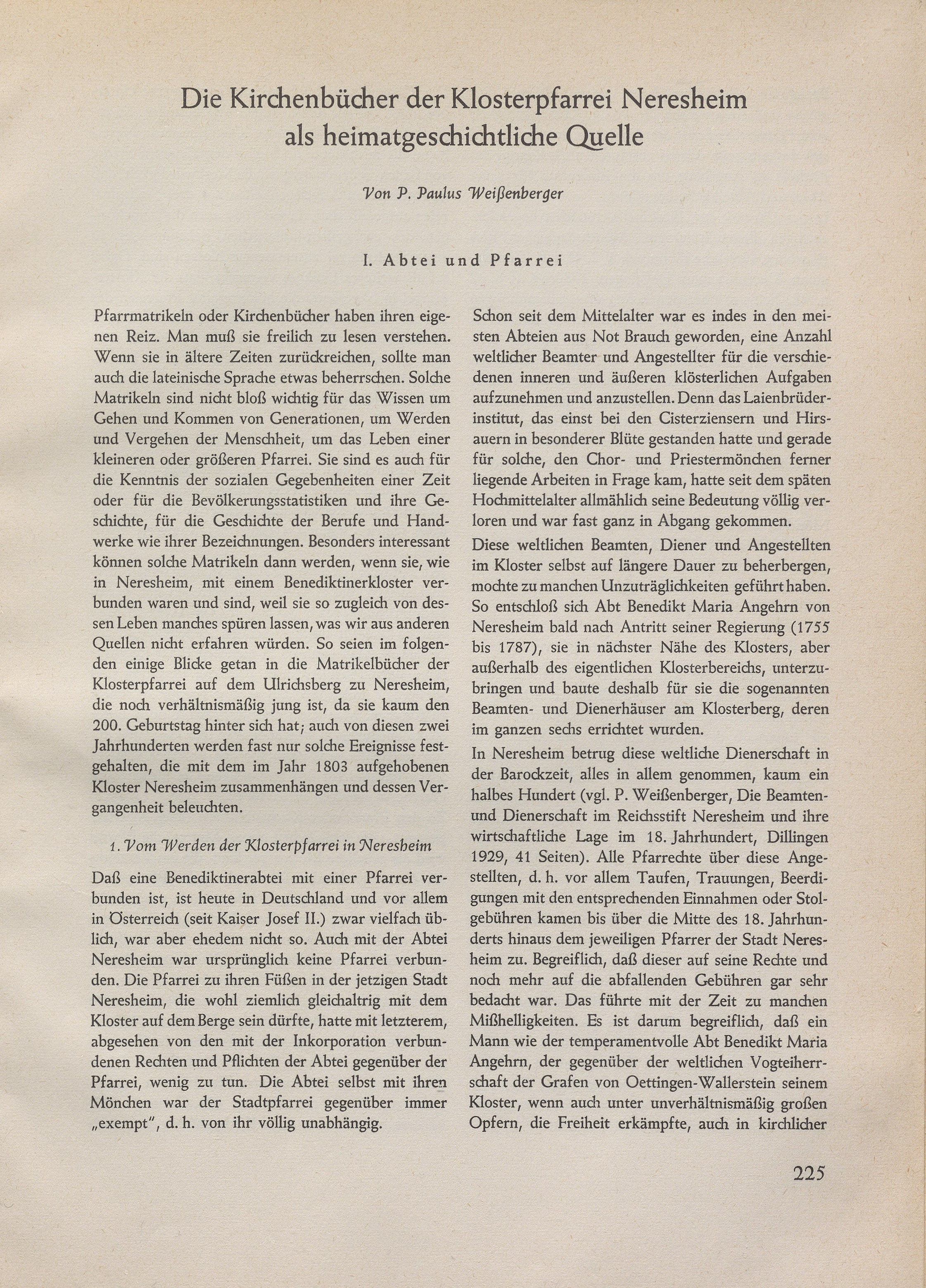 Die Kirchenbücher der Klosterpfarrei Neresheim als heimatgeschichtliche Quelle
