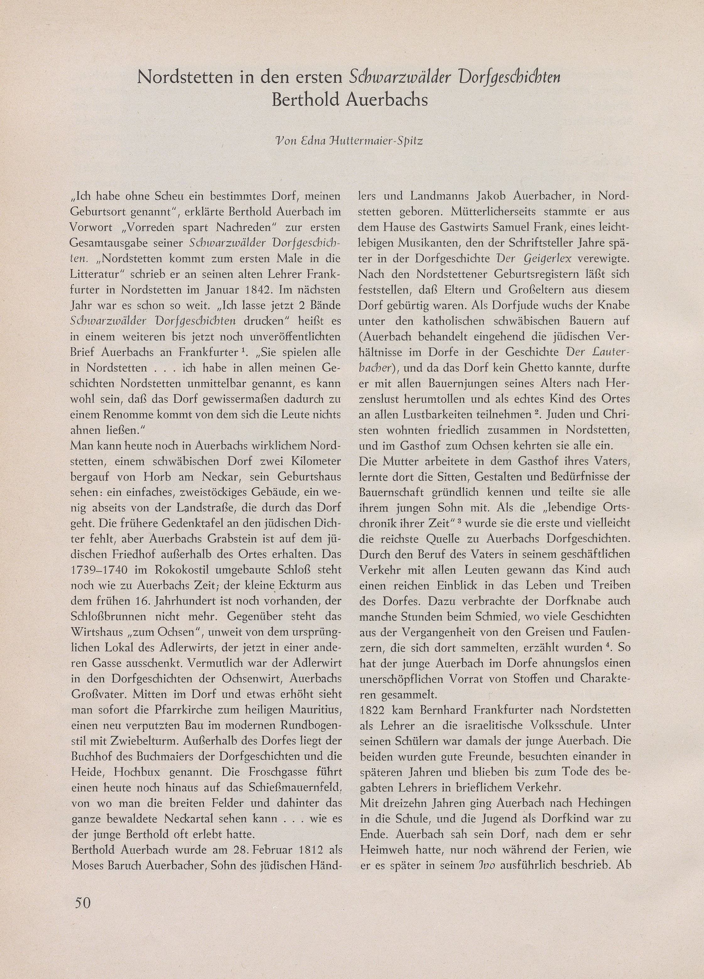 Nordstetten in den ersten "Schwarzwälder Dorfgeschichten" Berthold Auerbachs