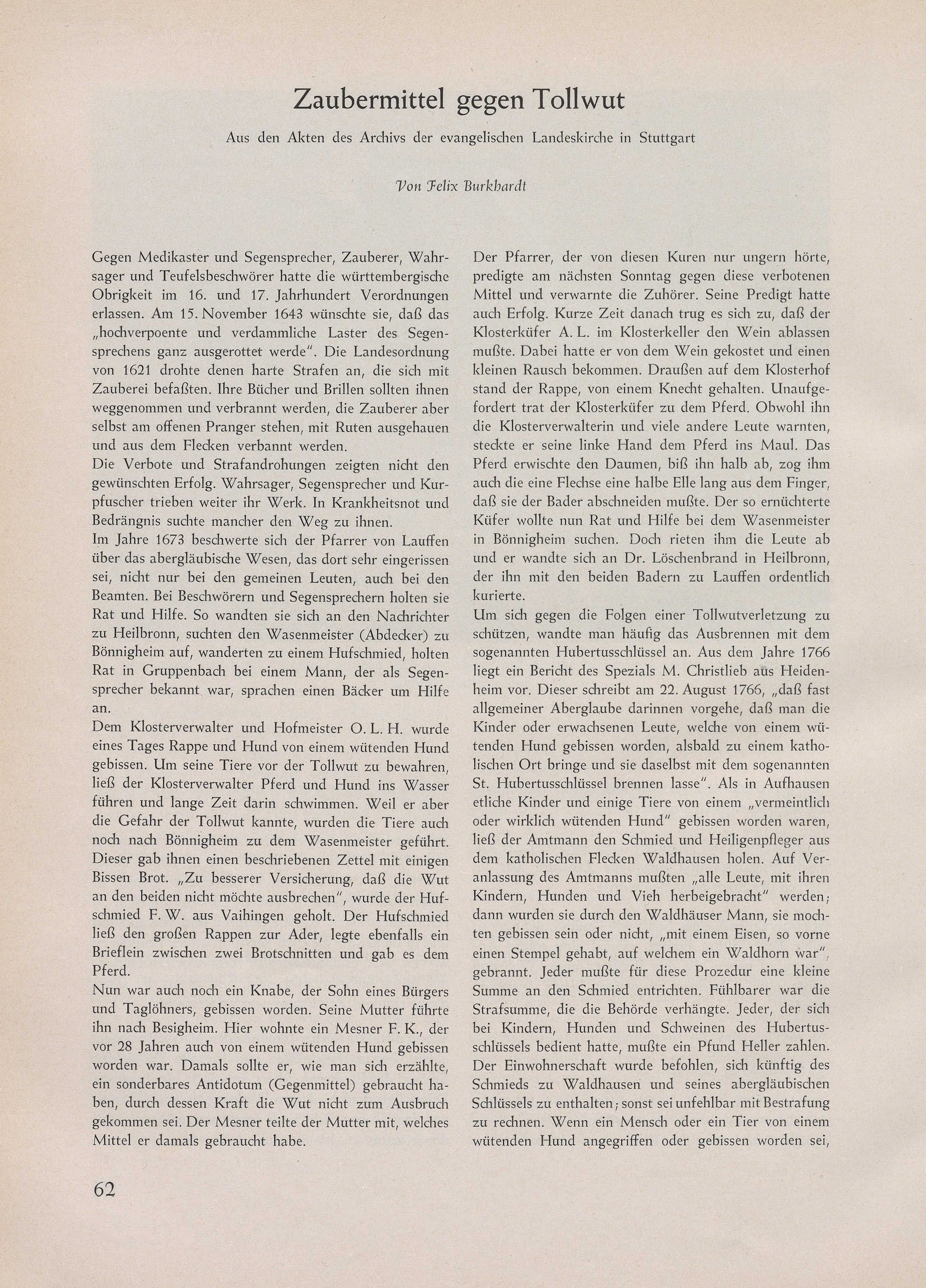 Aus den Akten des Archivs der evangelischen Landeskirche in Stuttgart