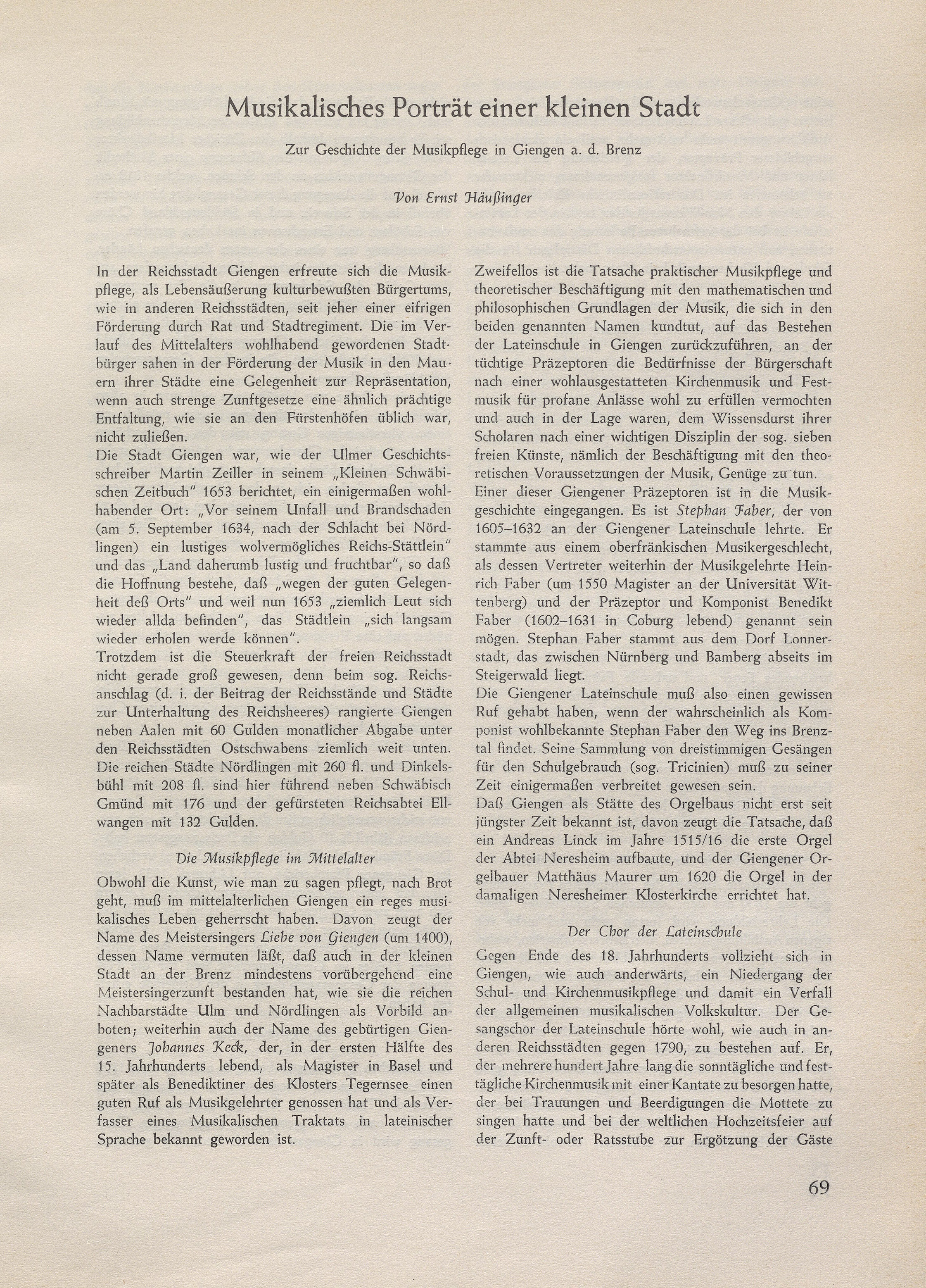 Zur Geschichte der Musikpflege in Giengen a. d. Brenz