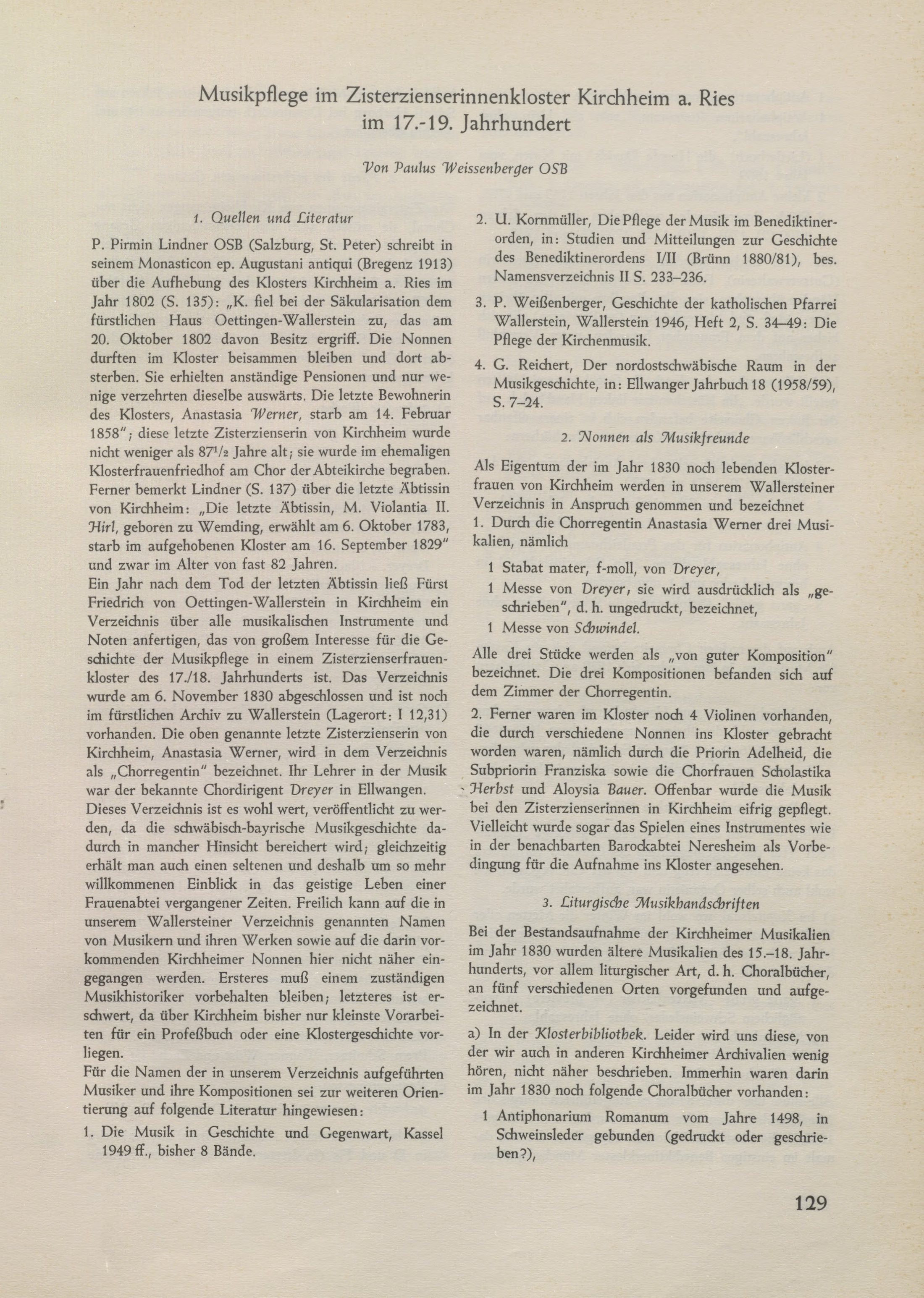 Musikpflege im Zisterzienserinnenkloster Kirchheim a. Ries im 17.-19. Jahrhundert