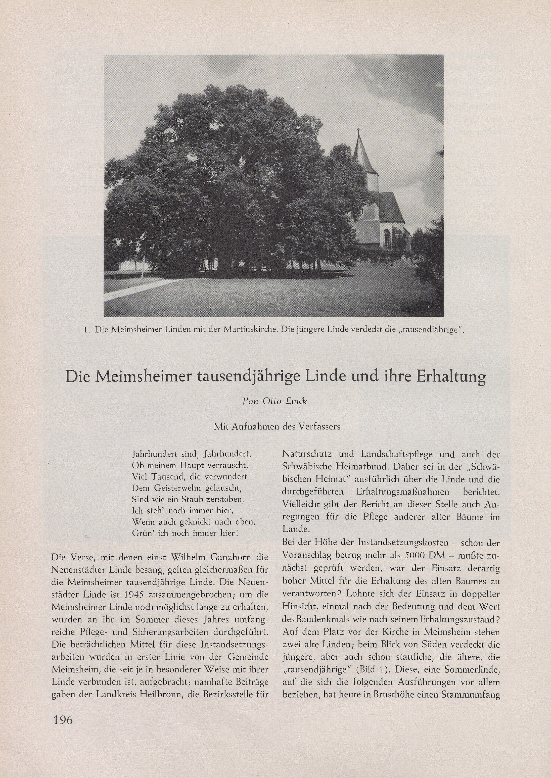 Die Meimsheimer tausendjährige Linde und ihre Erhaltung