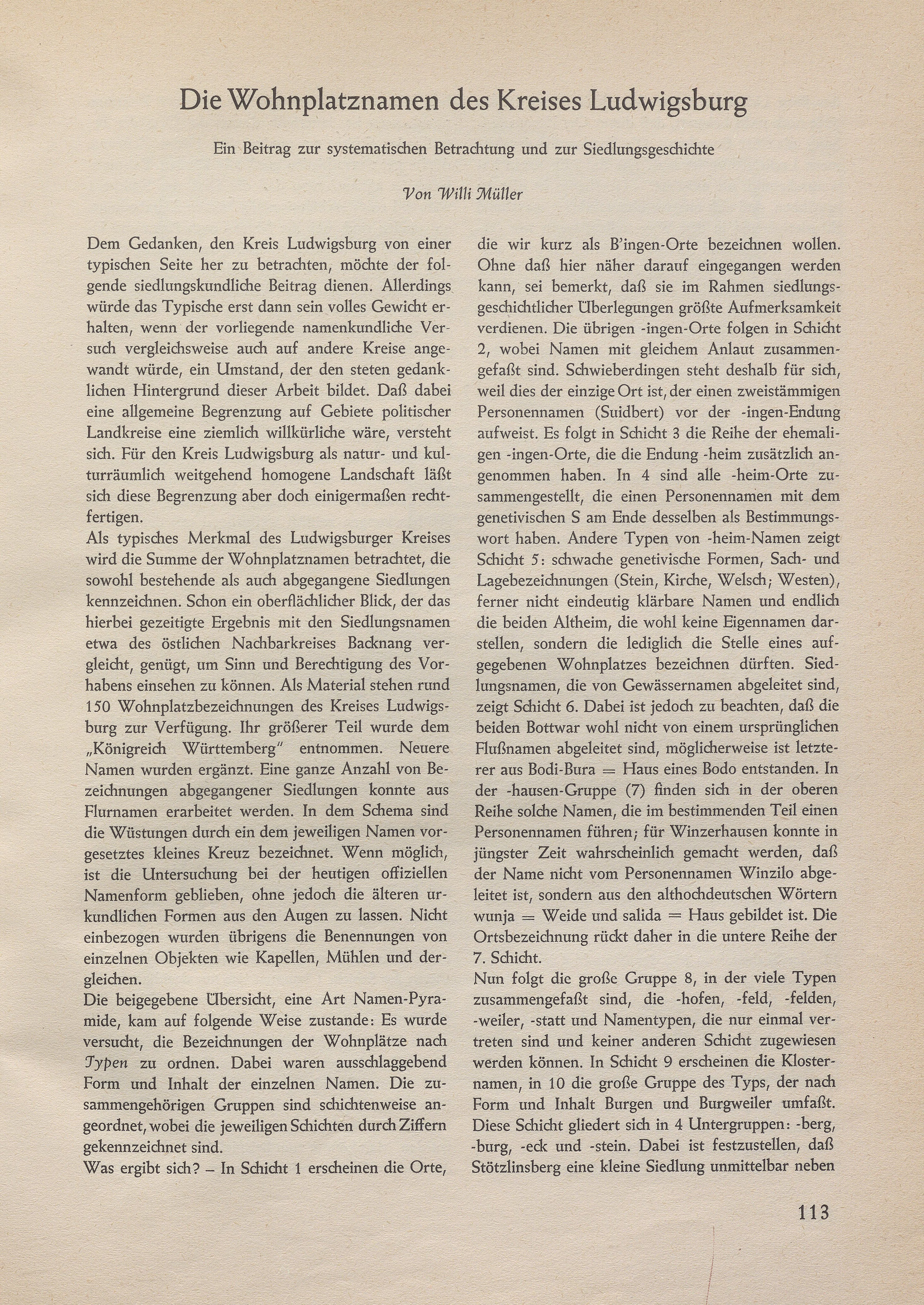 Die Wohnplatznamen des Kreises Ludwigsburg