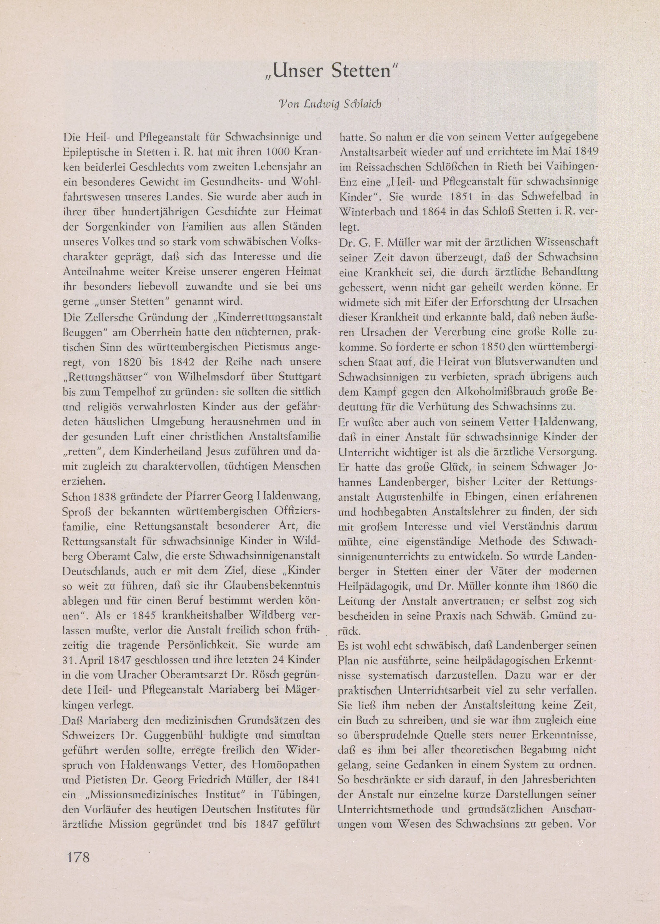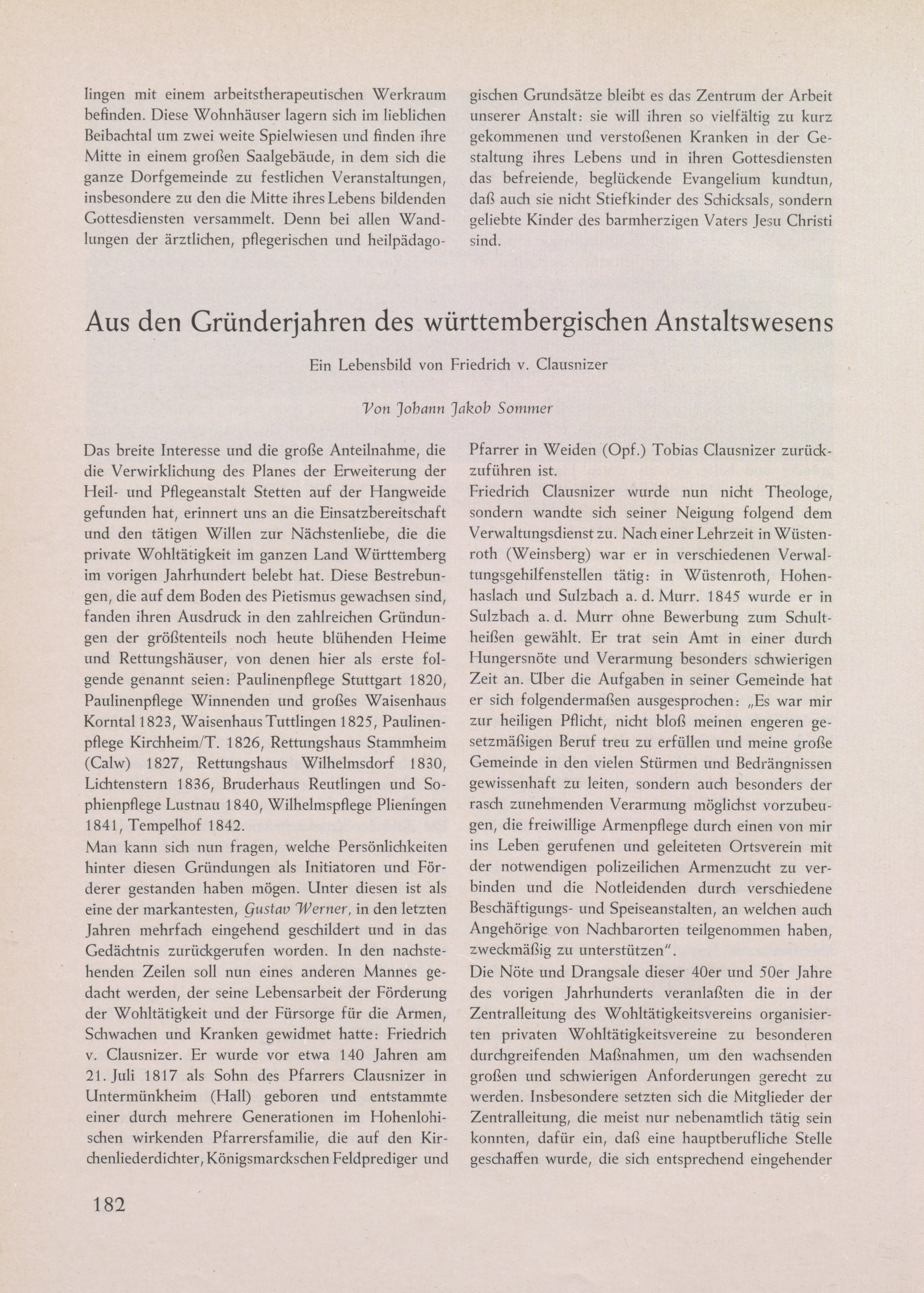 Aus den Gründerjahren des württembergischen Anstaltswesens