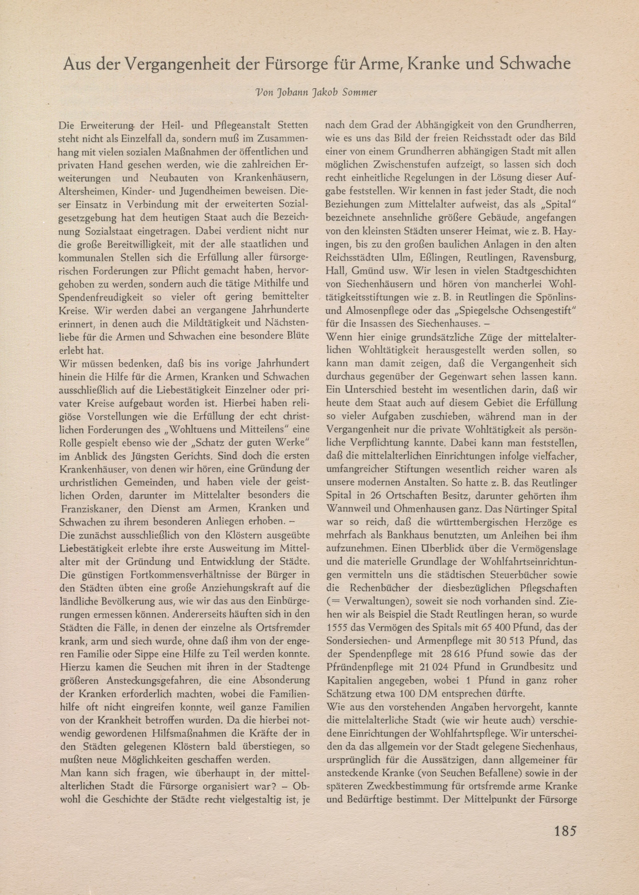 Aus der Vergangenheit der Fürsorge für Arme, Kranke und Schwache