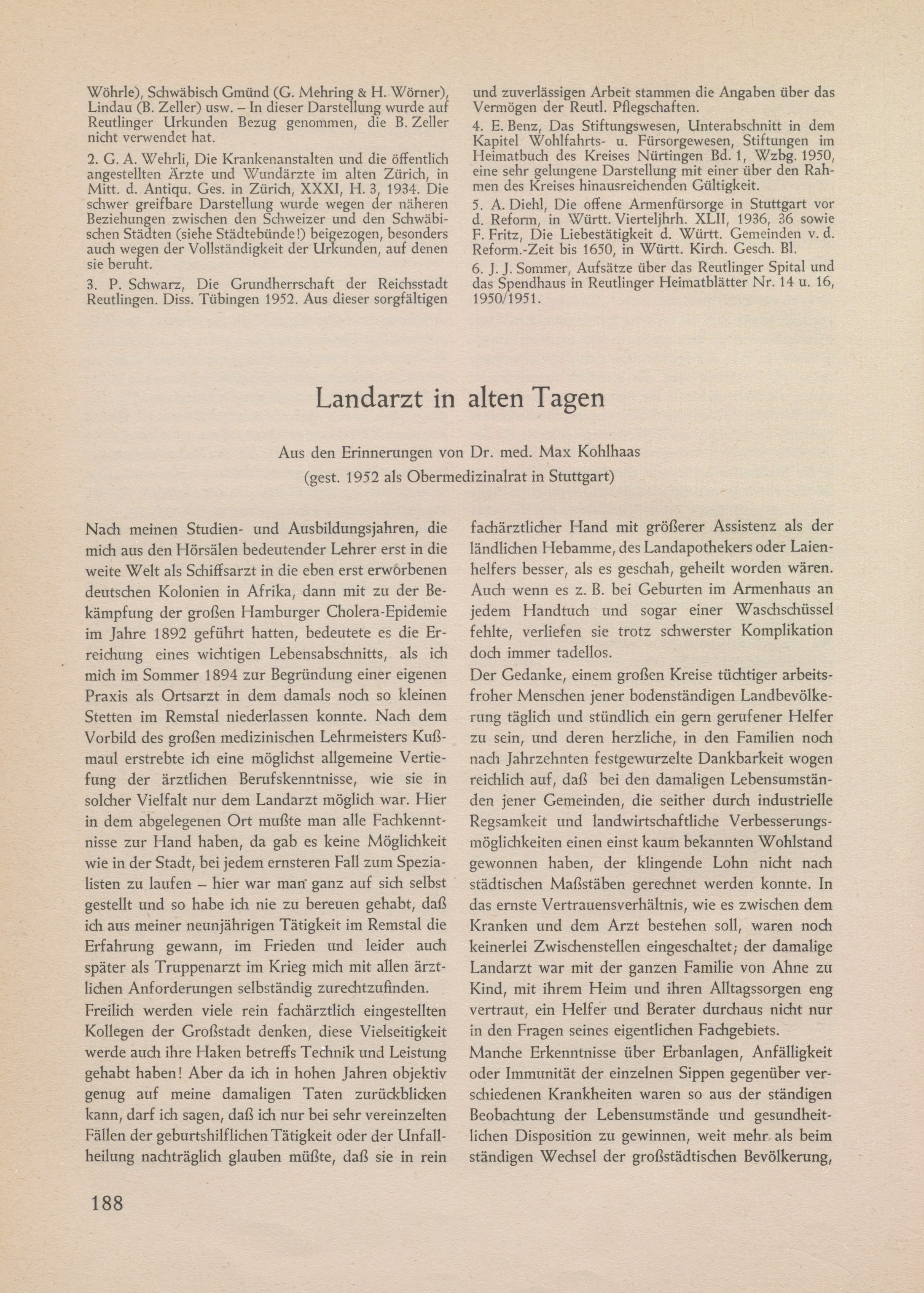 Aus den Erinnerungen von Dr. med. Max Kohlhaas (gest. 1952 als Obermedizinalrat in Stuttgart)