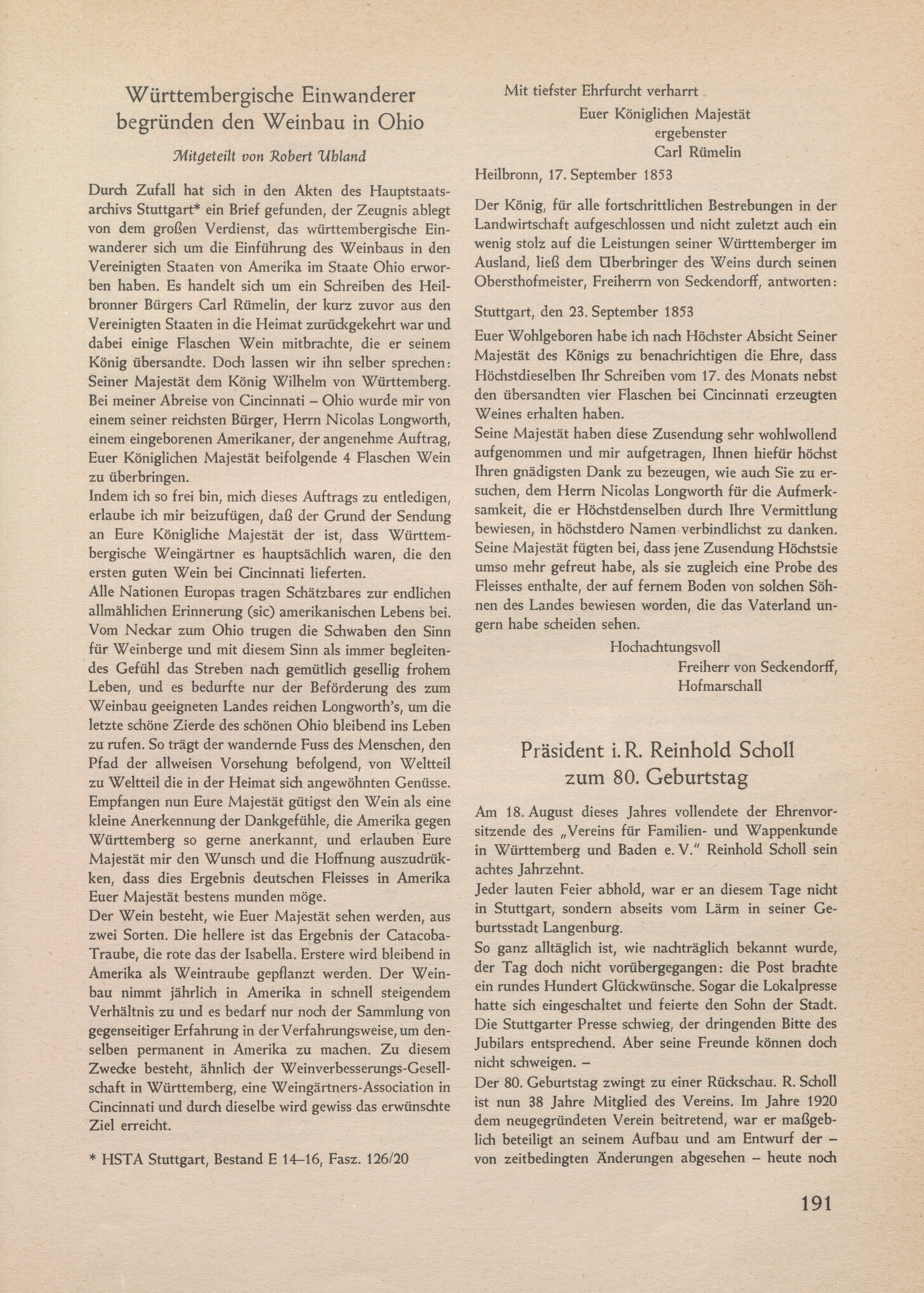 Württembergische Einwanderer begründen den Weinbau in Ohio