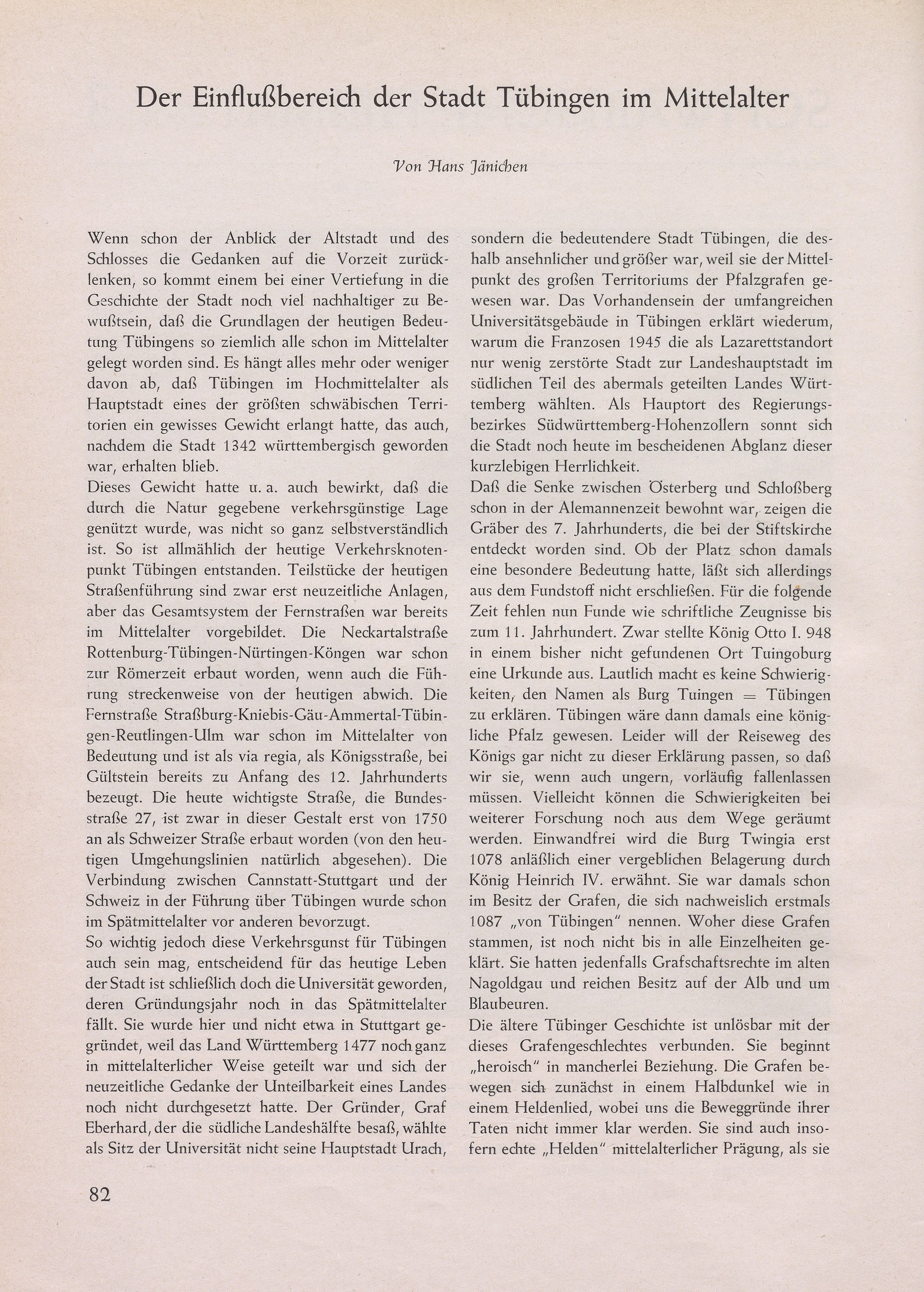Der Einflußbereich der Stadt Tübingen im Mittelalter