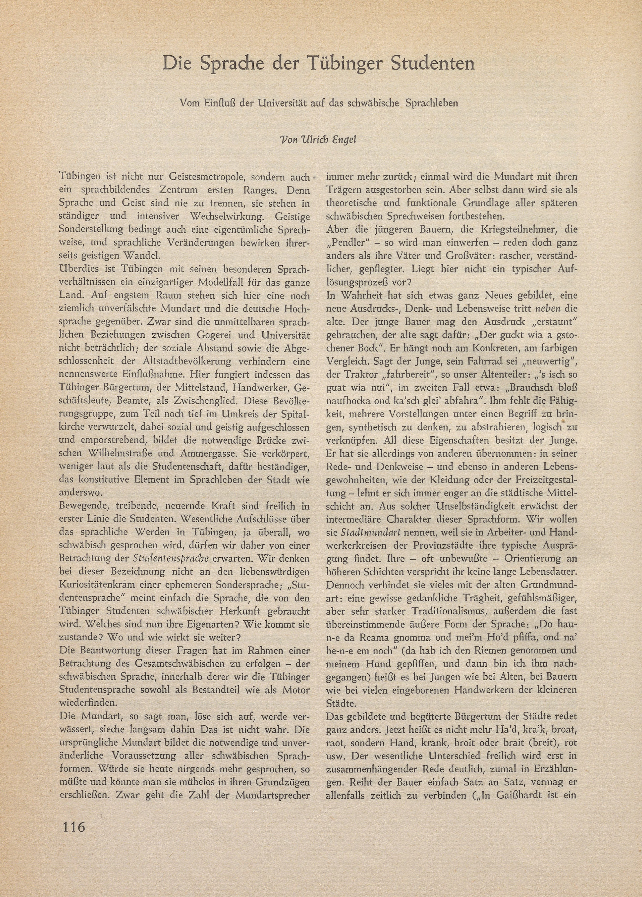 Vom Einfluß der Universität auf das schwäbische Sprachleben
