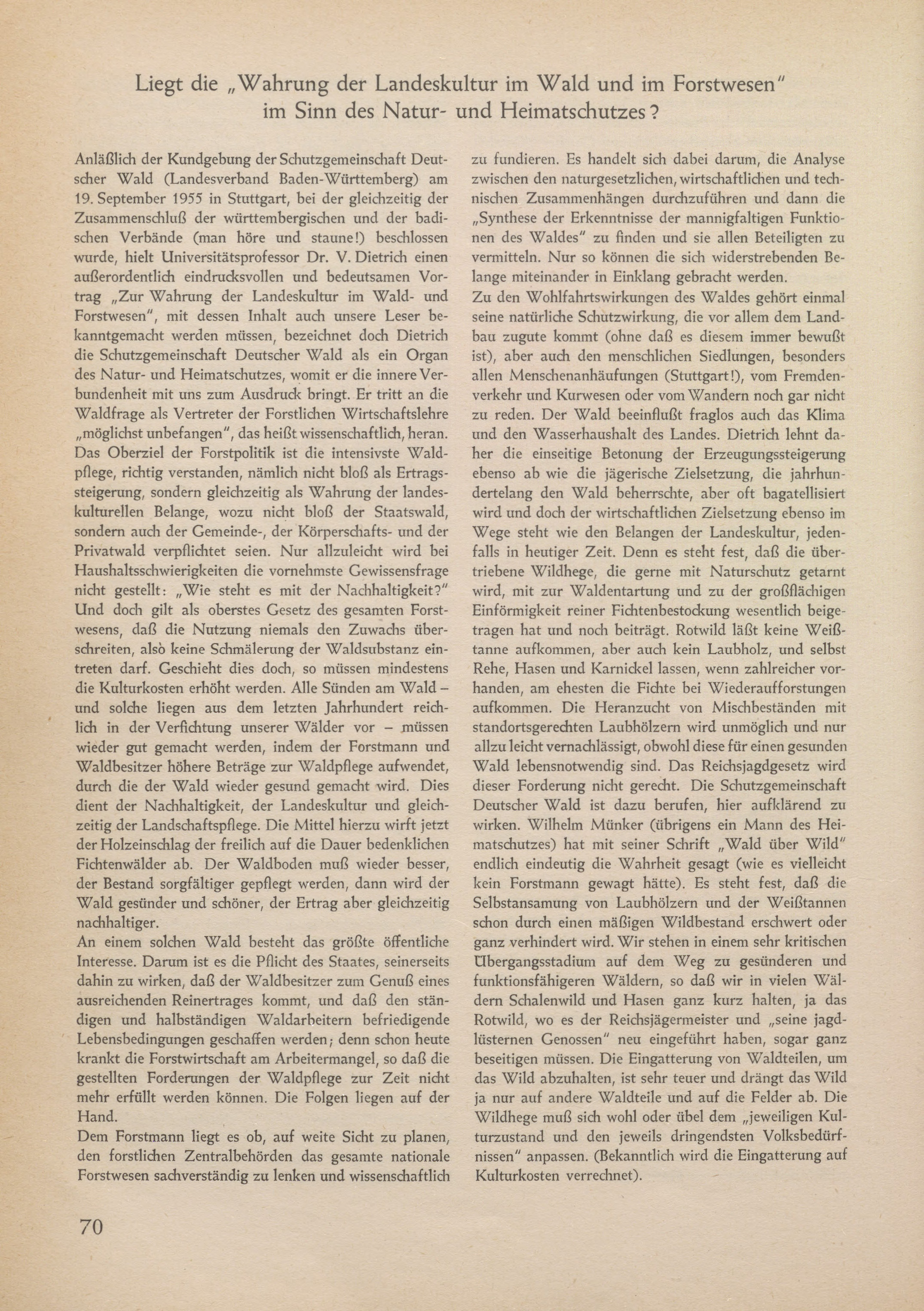 Liegt die "Wahrung der Landeskultur im Wald und im Forstwesen" im Sinn des Natur- und Heimatschutzes?