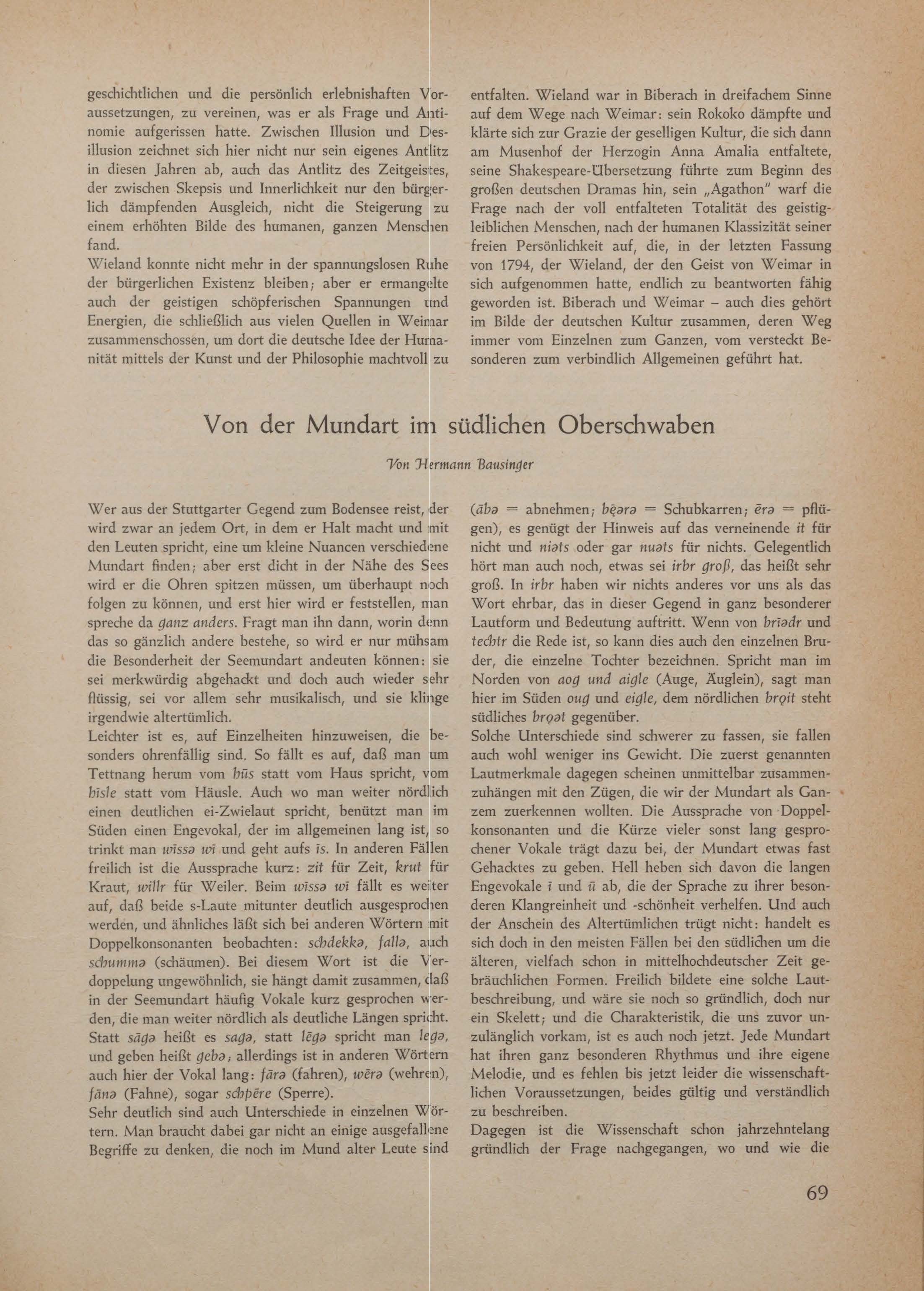 Von der Mundart im südlichen Oberschwaben