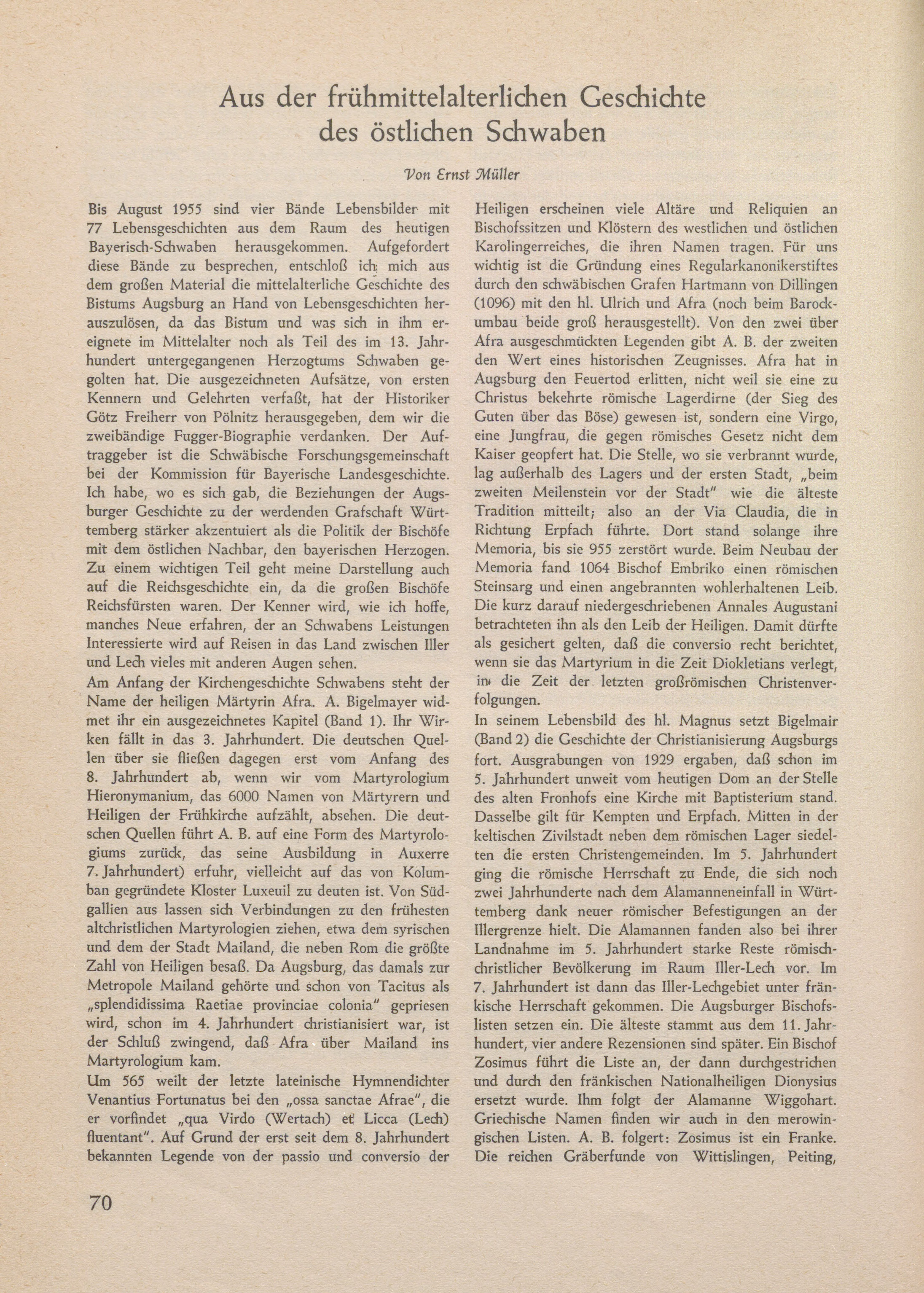 Aus der frühmittelalterlichen Geschichte des östlichen Schwaben
