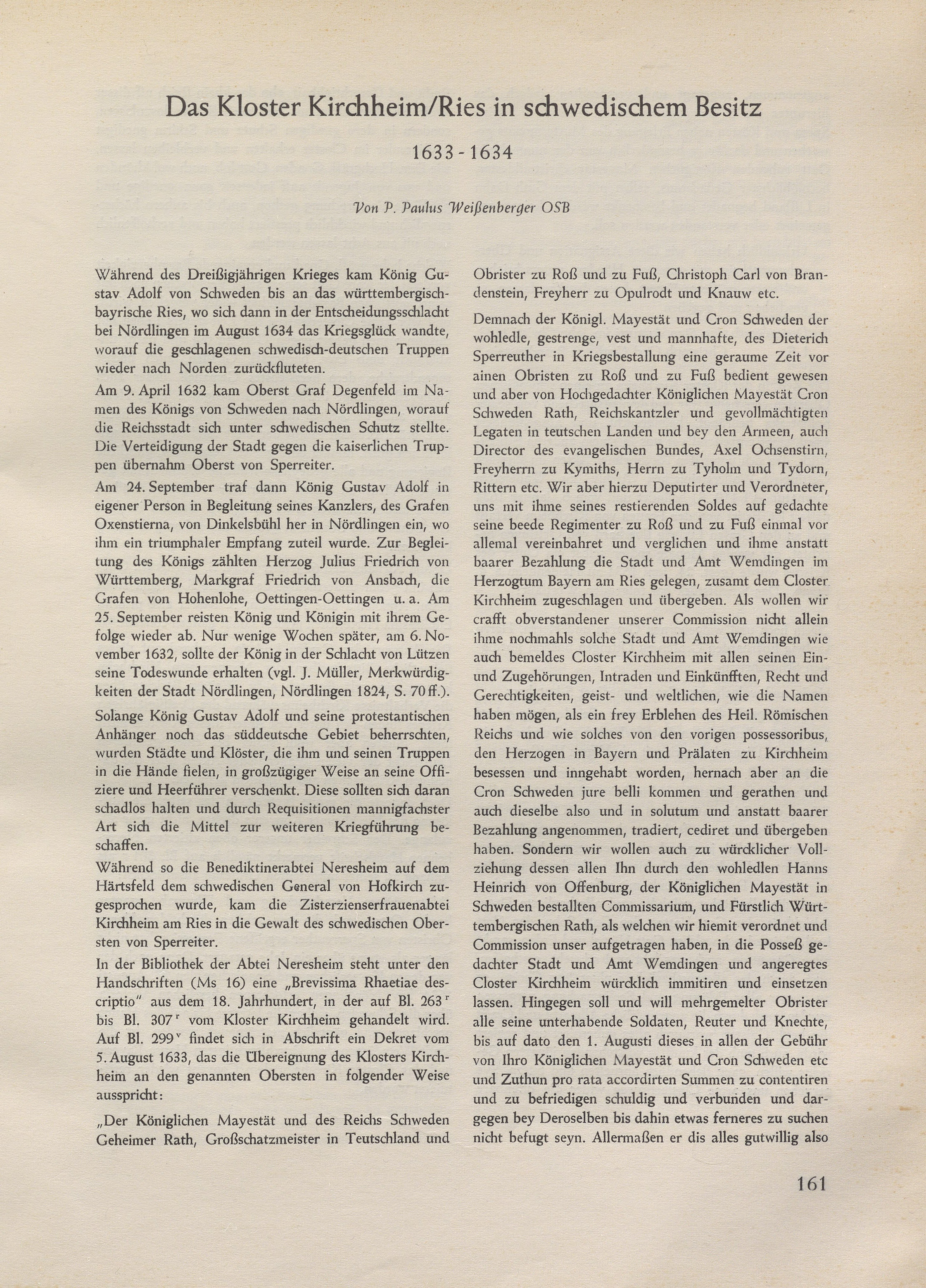 Das Kloster Kirchheim/Ries in schwedischem Besitz