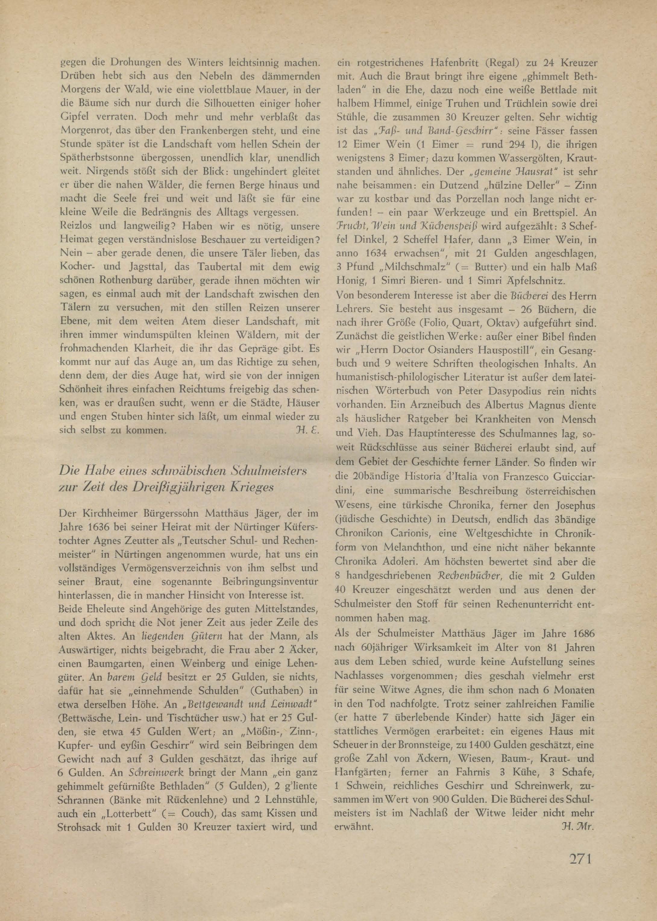 Die Habe eines schwäbischen Schulmeisters zur Zeit des Dreißigjährigen Krieges