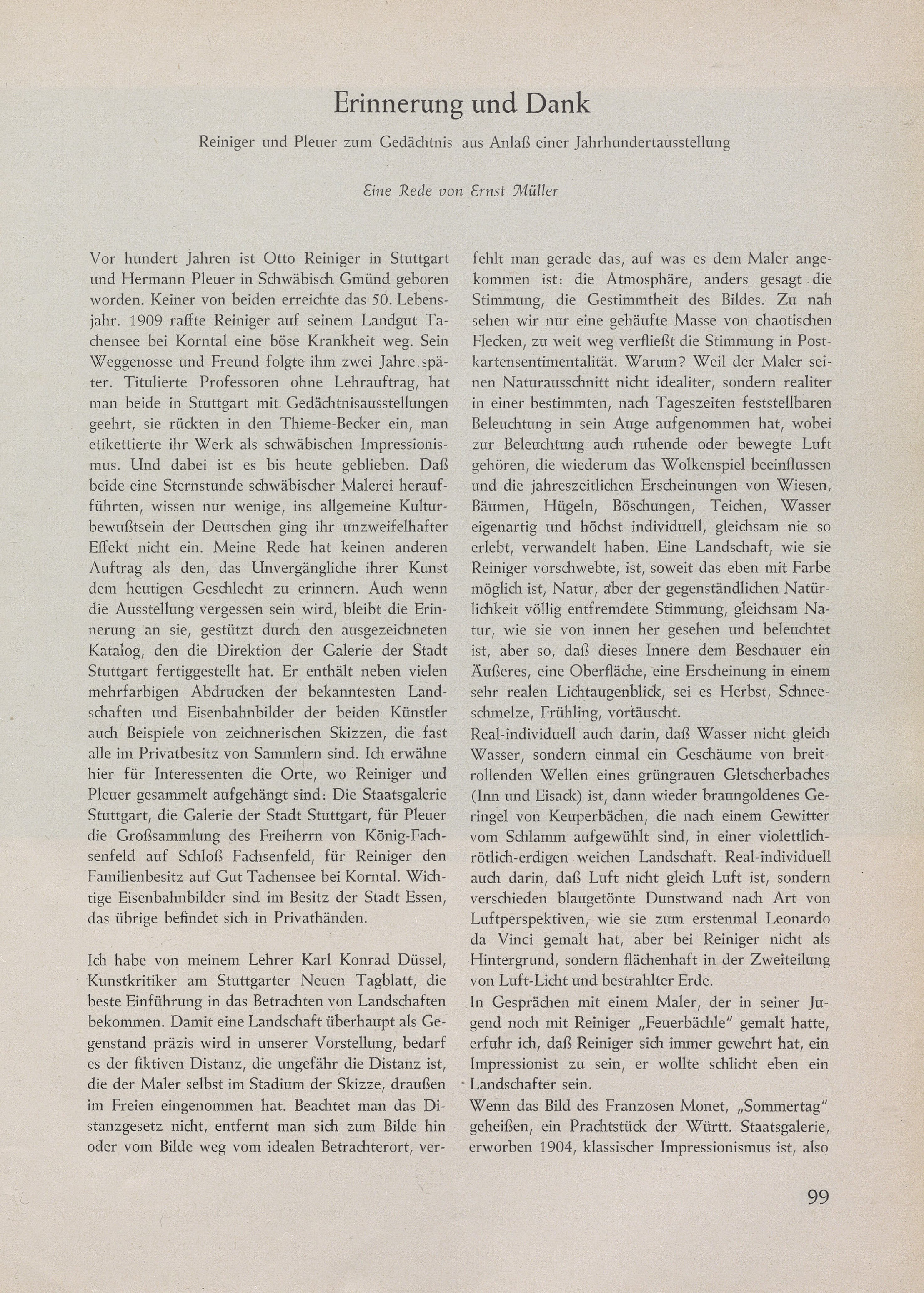 Reiniger und Pleuer zum Gedächtnis aus Anlaß einer Jahrhundertausstellung