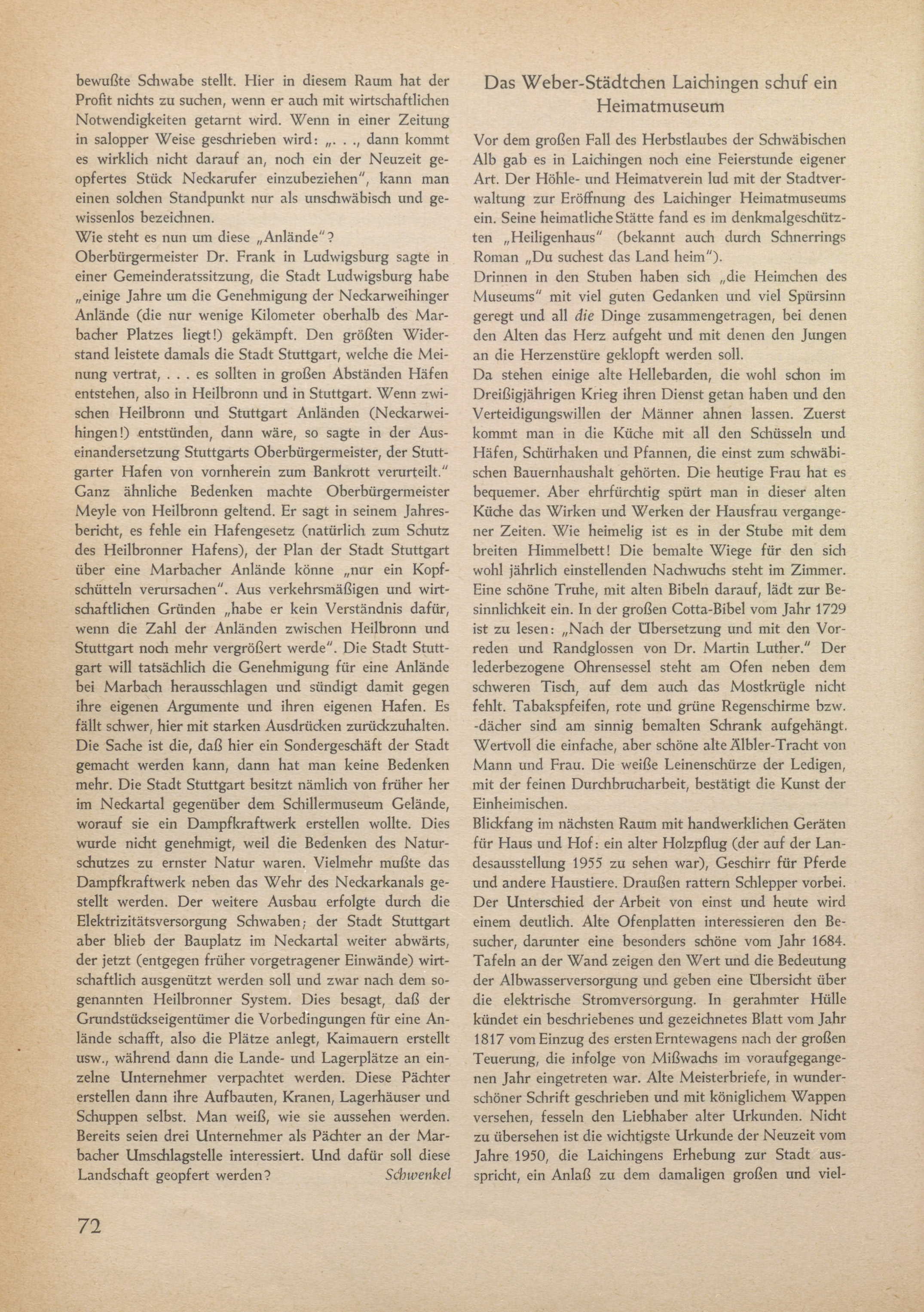 Das Weber-Städtchen Laichingen schuf ein Heimatmuseum