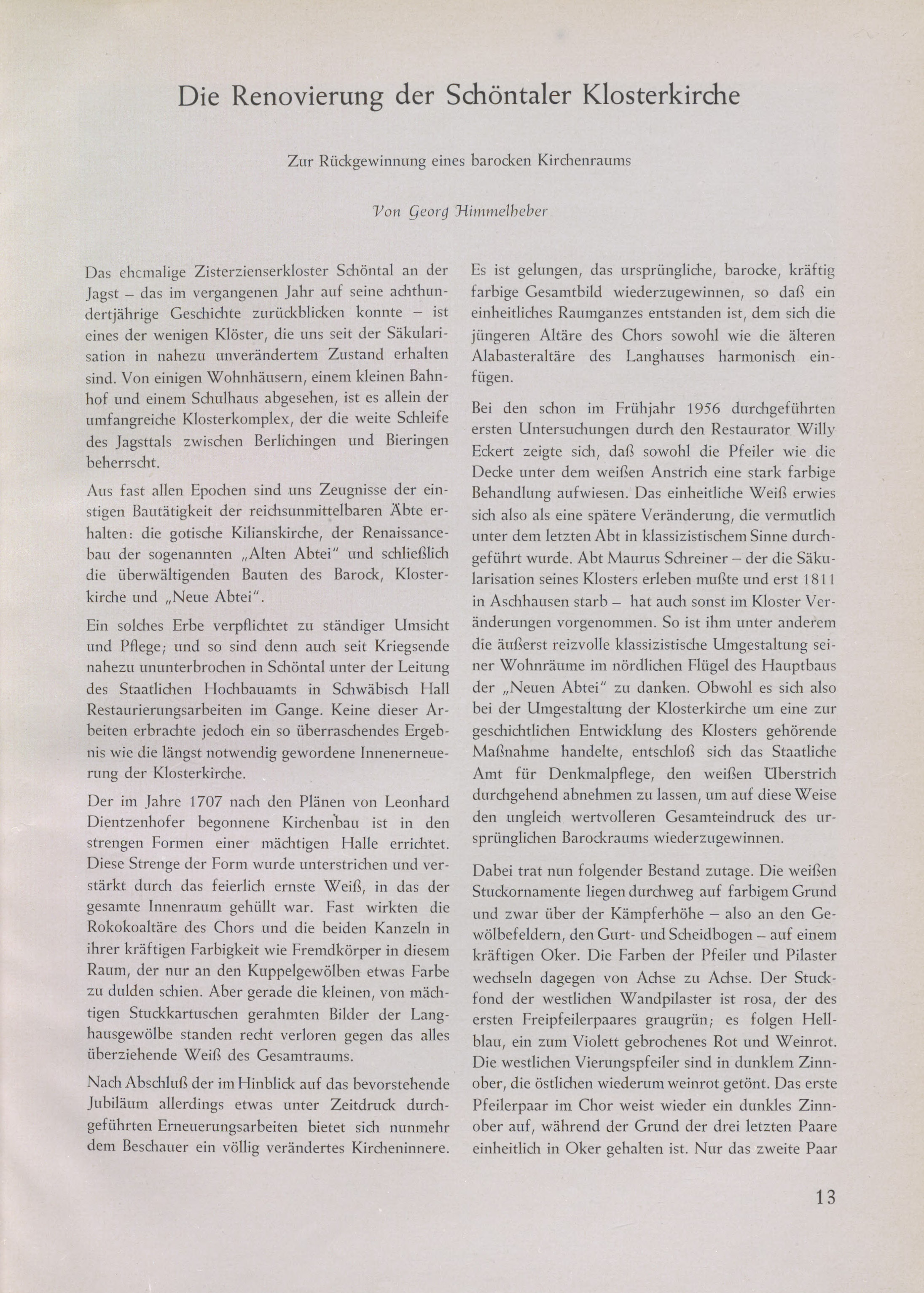 Die Renovierung der Schöntaler Klosterkirche
