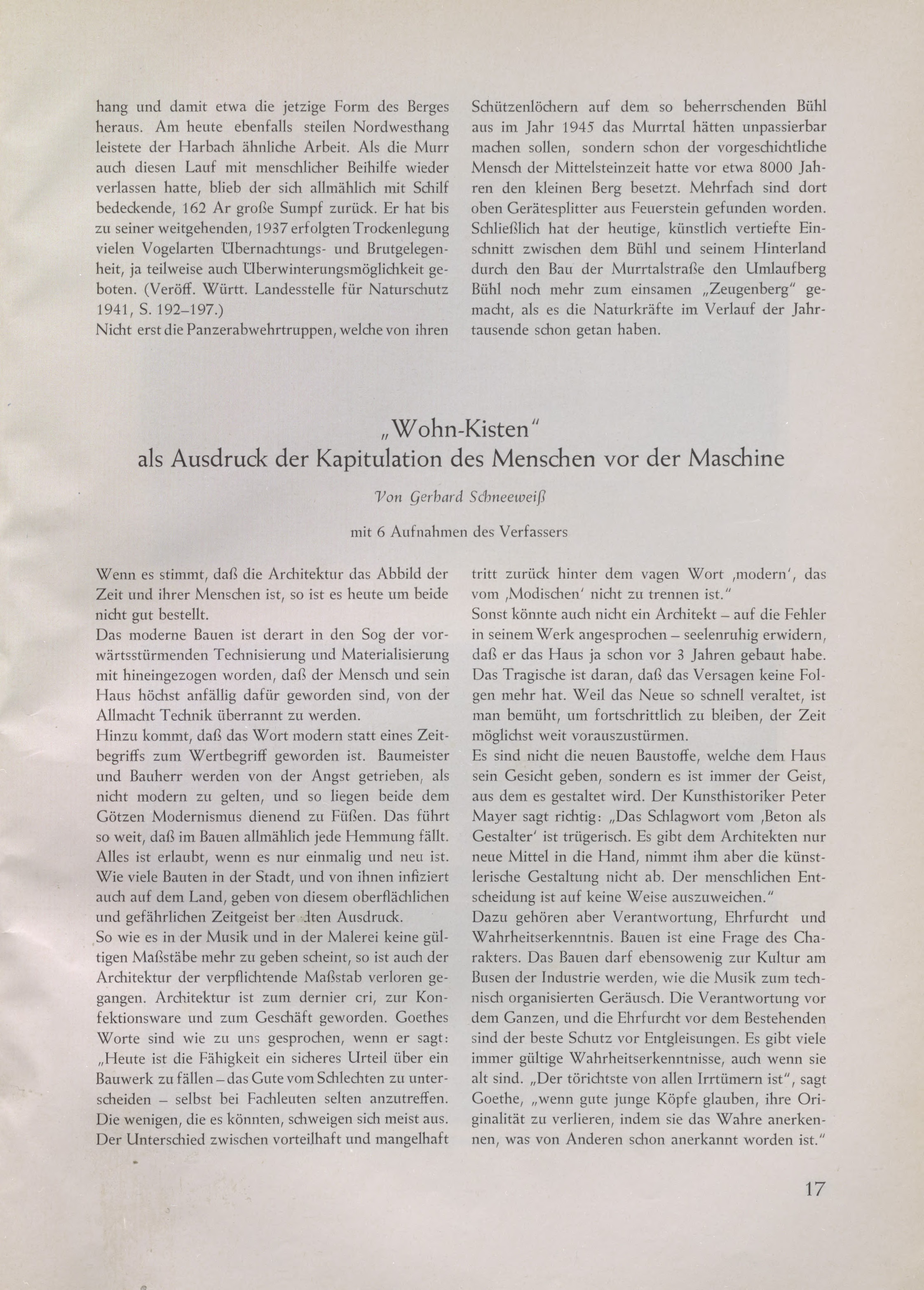 "Wohn-Kisten" als Ausdruck der Kapitulation des Menschen vor der Maschine