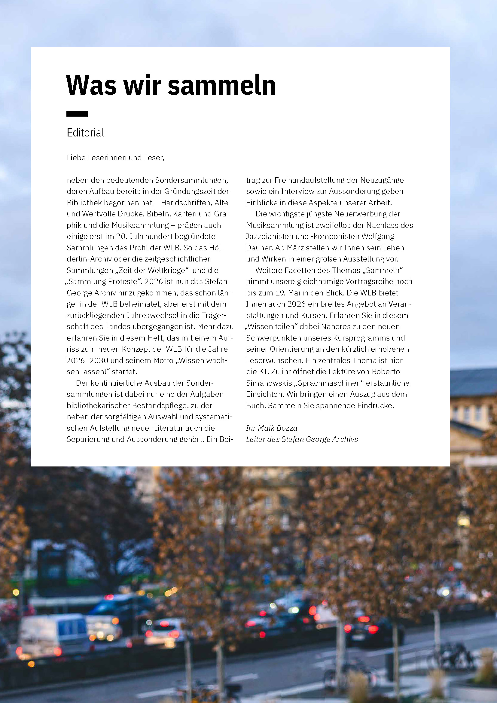 Das Konzept der Württembergischen Landesbibliothek für die Jahre 2026-2030